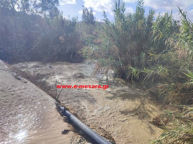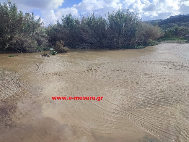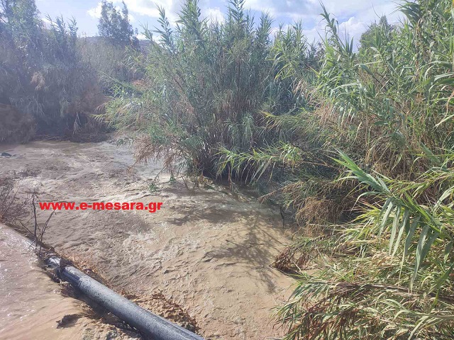 Στην περιοχή της Αγίας Τριάδας, οι μεγάλες ποσότητες νερού κατεβαίνουν με ορμή, σχηματίζοντας ακόμη και έναν μικρό φυσικό καταρράκτη στο πέρασμα. Το νερό παρασύρει χιλιάδες κυβικά μέτρα νερού στη θάλασσα, με τη δύναμή του να είναι εμφανής σε κάθε σημείο της κοίτης.