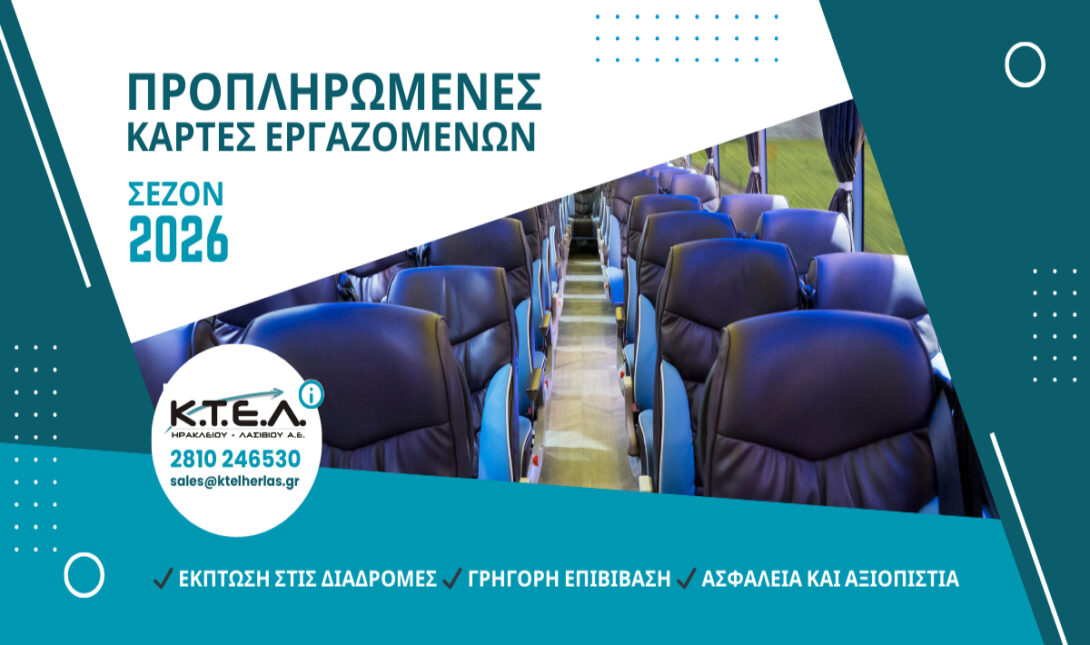 - Τα τακτικά δρομολόγια της ΚΤΕΛ Ηρακλείου Λασιθίου ΑΕ προσφέρουν αξιόπιστες λύσεις μετακίνησης για εργαζόμενους στον τουριστικό κλάδο της Κρήτης.