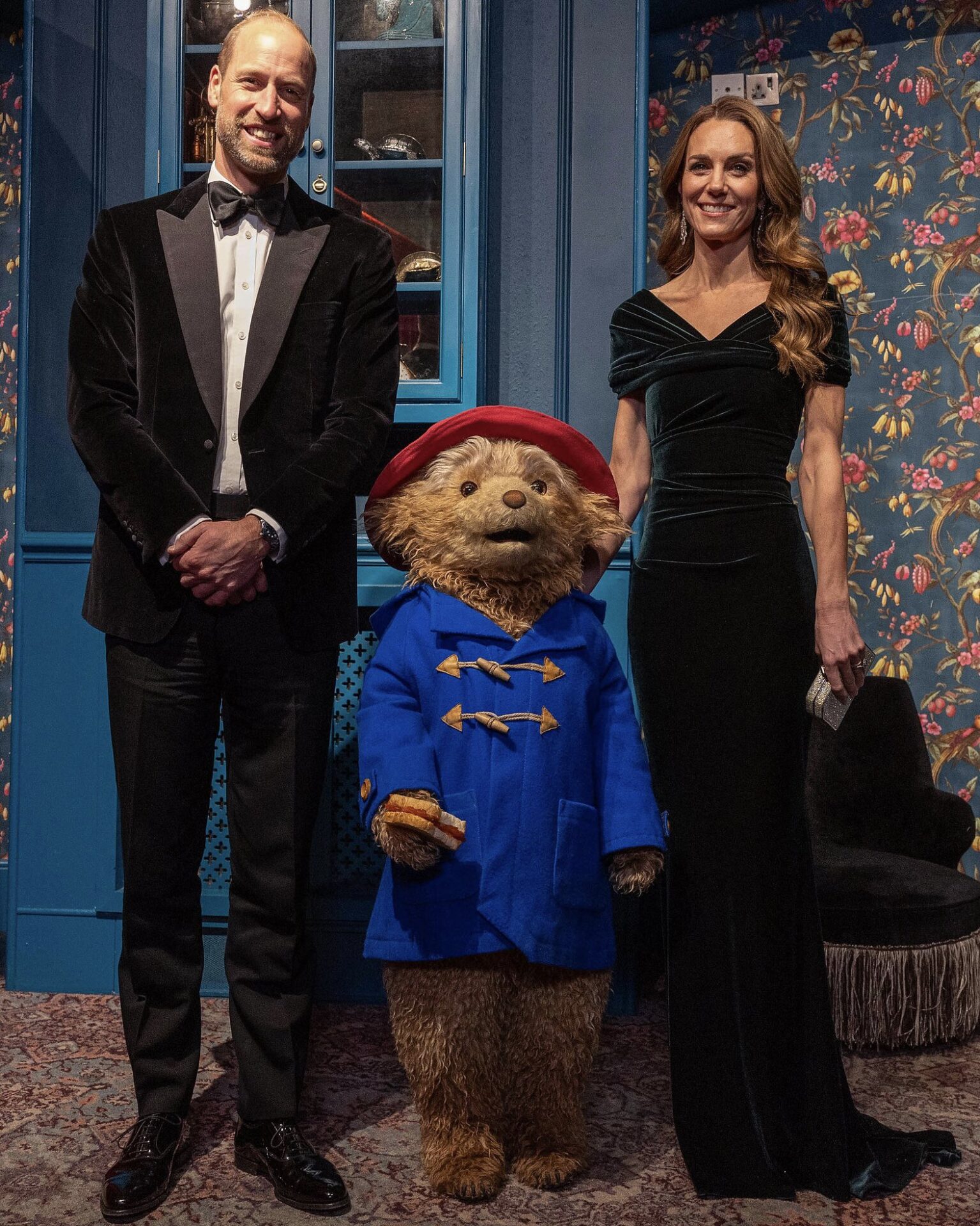 Τόσο ο πρίγκιπας όσο και η πριγκίπισσα ήταν εντυπωσιακοί, με την Κέιτ Μίντλετον να επιλέγει μια υπέροχη σκούρα πράσινο βελούδινη τουαλέτα από τον Talbot Runhof, ενώ ο Γουίλιαμ εμφανίστηκε επίσης με βελούδο, φορώντας ένα μαύρο σμόκιν.