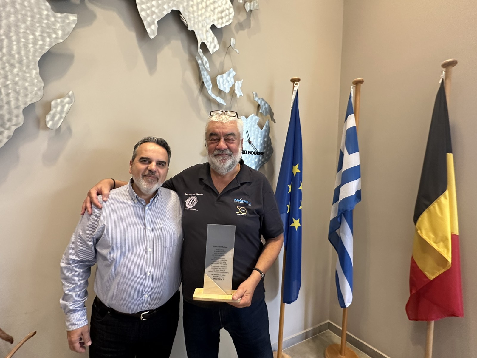 Σήμερα, στα γραφεία του Ομίλου, οι συνάδελφοί του —οι άνθρωποι με τους οποίους μοιράστηκε καθημερινά χαρές, δυσκολίες και επιτυχίες— ετοίμασαν μια μικρή αλλά θερμή γιορτή για να τον αποχαιρετήσουν.