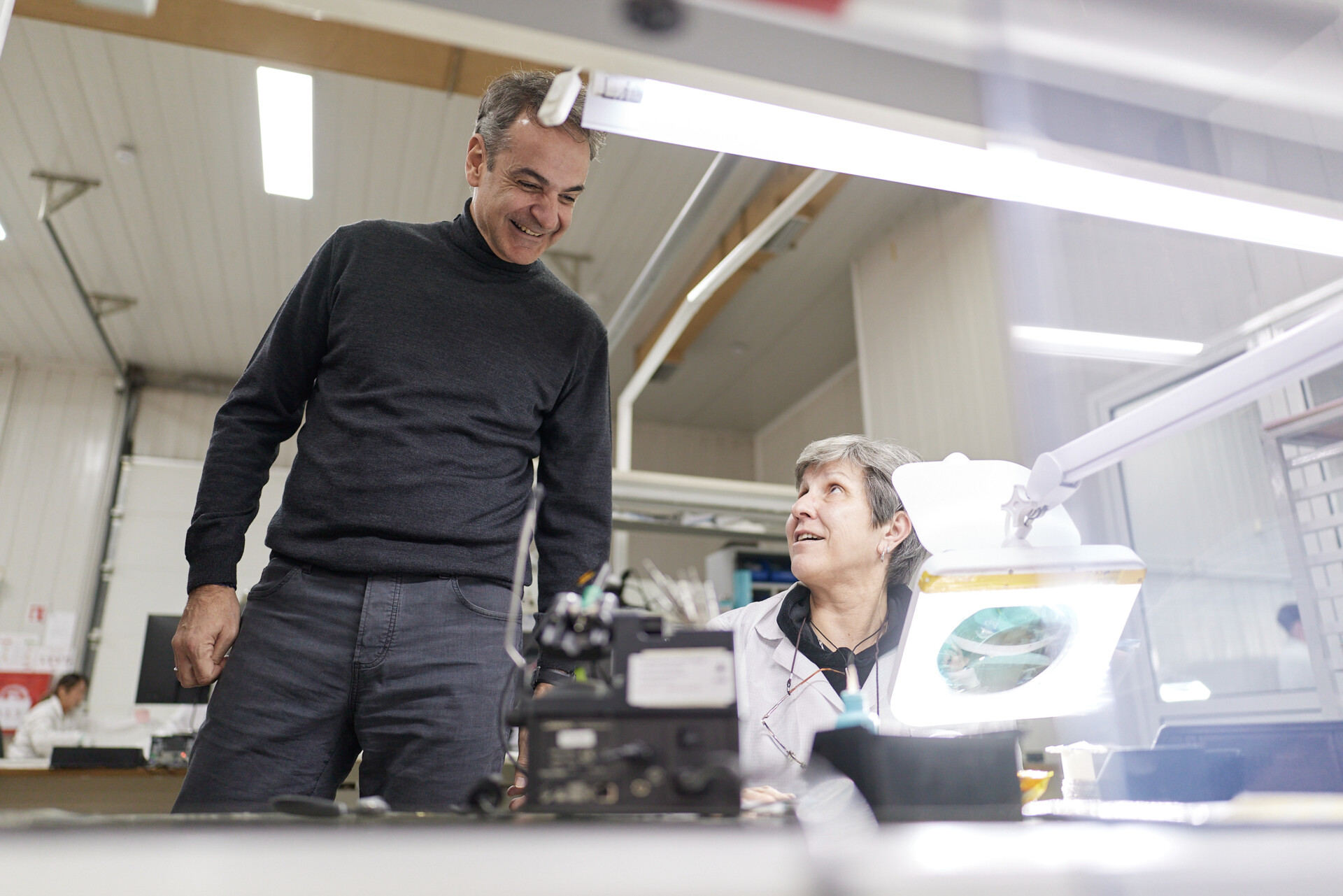 Ο Πρωθυπουργός ξεναγήθηκε από τη διοίκηση της εταιρείας, τους Γιώργο, Ηλία και Χρήστο Γιορδαμλή, στους χώρους παραγωγής. Συνομίλησε με το προσωπικό και ενημερώθηκε για τις καινοτόμες λύσεις που προσφέρει η Prisma Electronics, η οποία συνεργάζεται με κορυφαίους διεθνείς φορείς, όπως ο Ευρωπαϊκός Οργανισμός Διαστήματος, η Airbus DS και το CERN.