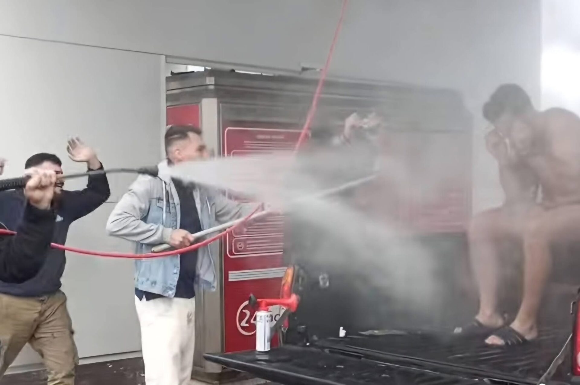 Ο γαμπρός Αντώνης που παντρεύεται, απόψε, ανήμερα της ονομαστικής του εορτής, στο χωριό Λούρες Δήμου Γόρτυνας- “φορτώθηκε” στην καρότσα αγροτικού και οδηγήθηκε σε Πλυντήριο Αυτοκινήτων, όπου οι φίλοι του τού έκαναν “γενικό καθαρισμό”, πλένοντας τον με νερό υπό πίεση, με τη μάνικα, πριν φορέσει το γαμπριάτικο κουστούμι!