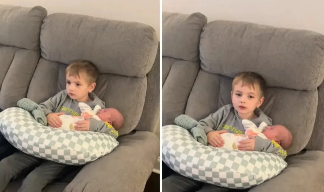 Ο Κένζι, που δεν αποκάλυψε το επώνυμό του, ανάρτησε στο TikTok ένα βίντεο τη στιγμή που μπαίνει στο σαλόνι και βρίσκει τον μεγαλύτερο γιο του, τον Κόα, να κρατά στην αγκαλιά του το νεογέννητο αδερφάκι του στον καναπέ.