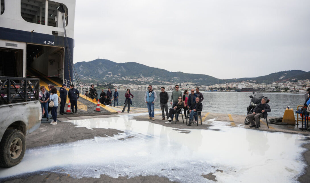 Ειδικότερα, αγρότες και κτηνοτρόφοι δεν επέτρεψαν την επιβίβαση στο πλοίο «Νήσος Σάμος» με προορισμό Χίο και Πειραιά, παρά μόνο σε στρατευμένους και ιατρικά περιστατικά.