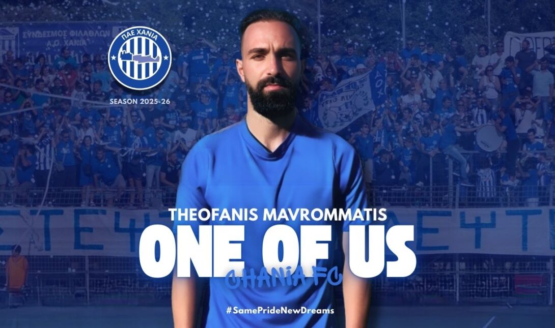Η ΠΑΕ ΧΑΝΙΑ καλωσορίζει τον Θεοφάνη Μαυρομμάτη και εύχεται καλή επιτυχία στη νέα του πρόκληση, ενισχύοντας σημαντικά την άμυνα της ομάδας».