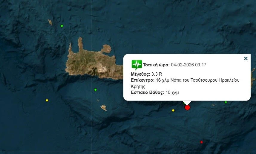 Νέος σεισμός 3,3 Ρίχτερ νότια της Κρήτης.