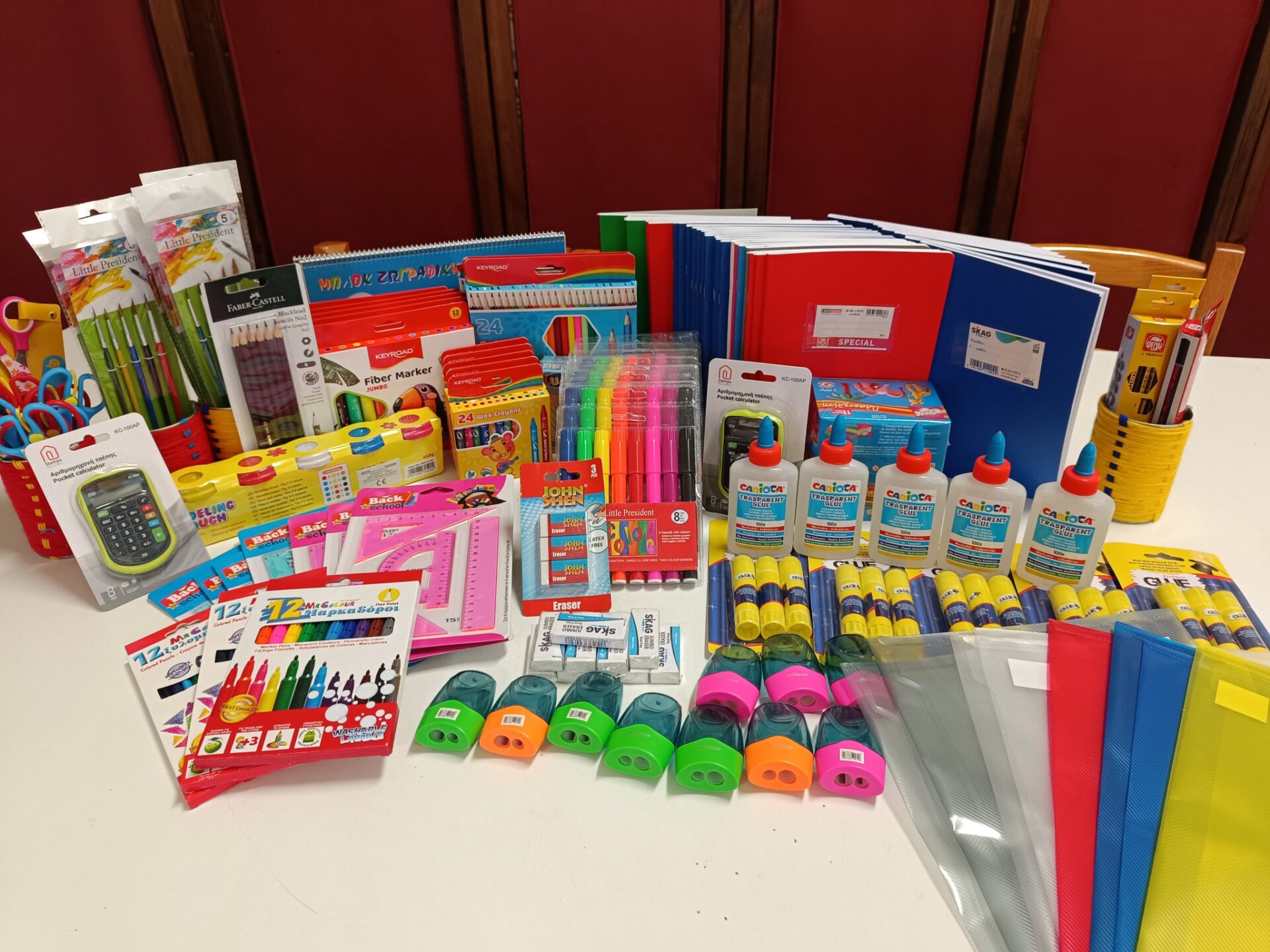 Τα μέλη του Κέντρου δημιούργησαν χειροποίητες μολυβοθήκες από ανακυκλώσιμα υλικά και συγκέντρωσαν με πολύ αγάπη σχολικά είδη όπως τετράδια, μολύβια, μαρκαδόρους, στύλους, γόμες, μπλοκ ζωγραφικής, τσάντες κ.α.