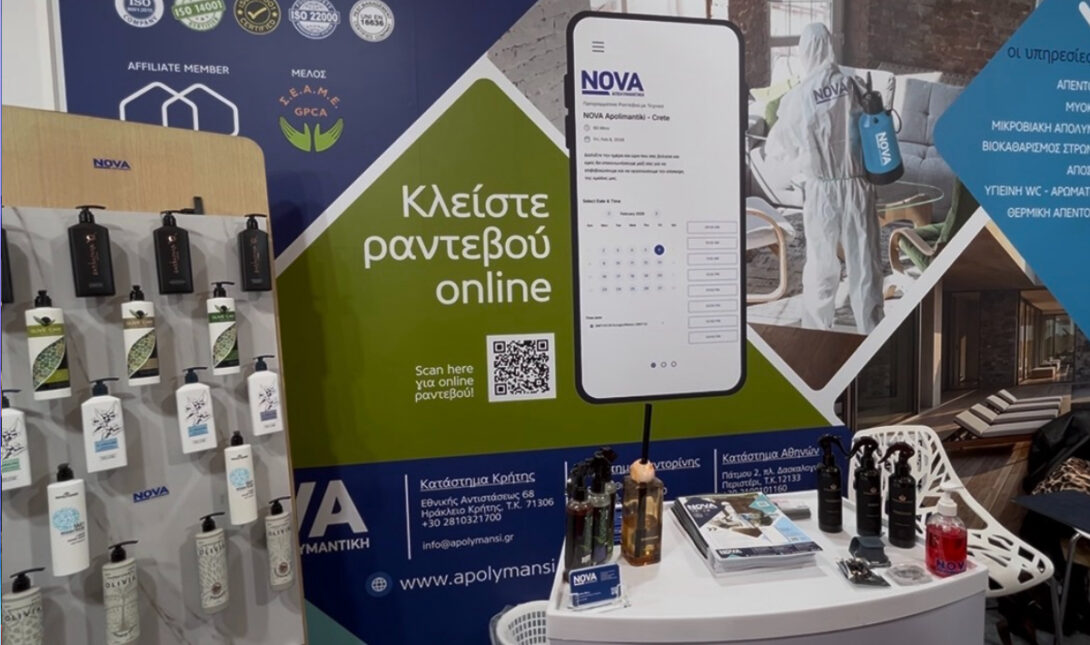 Μέσα από το περίπτερό της, η Nova είχε την ευκαιρία να επικοινωνήσει με επιχειρηματίες και στελέχη του τουρισμού σχετικά με τις ανάγκες τους για καθαριότητα, απολύμανση και πρόληψη από έντομα και μικρόβια – υπηρεσίες που αποτελούν κρίσιμη παράμετρο για την υγιεινή και ασφάλεια των χώρων φιλοξενίας.