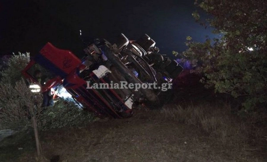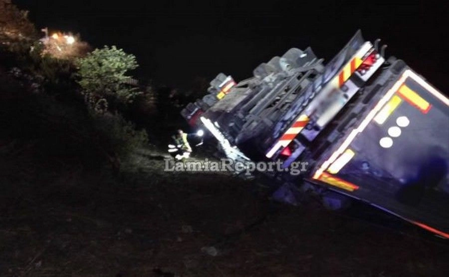 Όπως μεταδίδει το LamiaReport, το τροχαίο έγινε λίγο μετά τις 3 τα ξημερώματα της Τρίτης, όταν φέρεται να «έσκασε» το μπροστινό δεξί λάστιχο του οχήματος με αποτέλεσμα ο οδηγός να χάσει τον έλεγχο και η νταλίκα να βγει εκτός οδοστρώματος και να ανατραπεί στο πρανές της εθνική οδού.