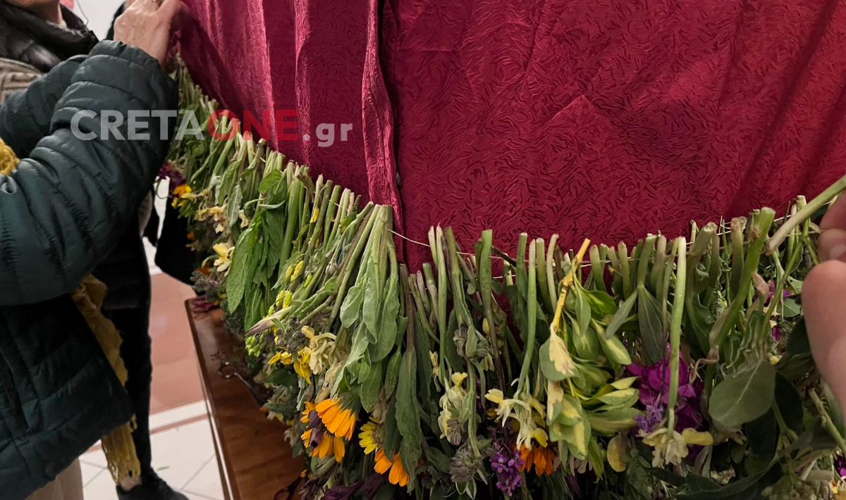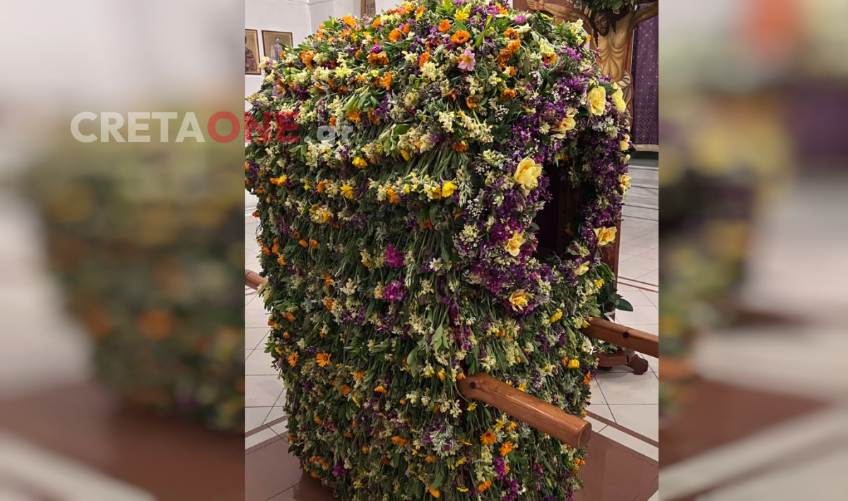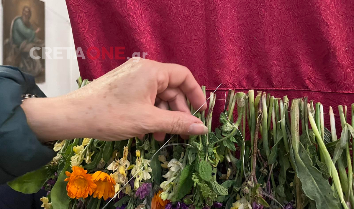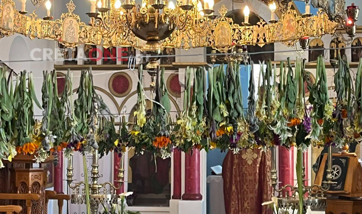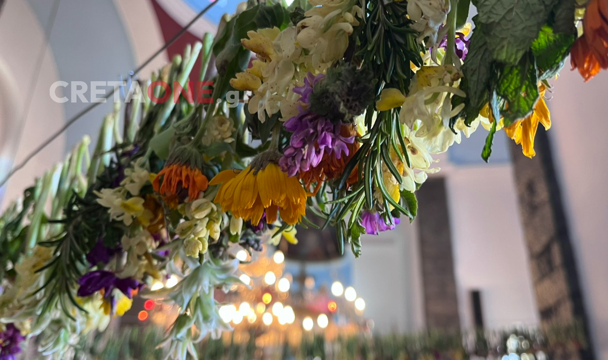 Φέτος, οι καιρικές συνθήκες και η αφρικανική σκόνη δυσκόλεψαν την προετοιμασία, οδηγώντας ακόμη και στο πλύσιμο των λουλουδιών πριν τον στολισμό. Παρ’ όλα αυτά, το αποτέλεσμα παραμένει εντυπωσιακό, με ζουμπούλια, μανουσάκια, δεντρολίβανο, κατιφέδες και λασιθιώτικες ορχιδέες να γεμίζουν τον ναό με έντονα αρώματα.