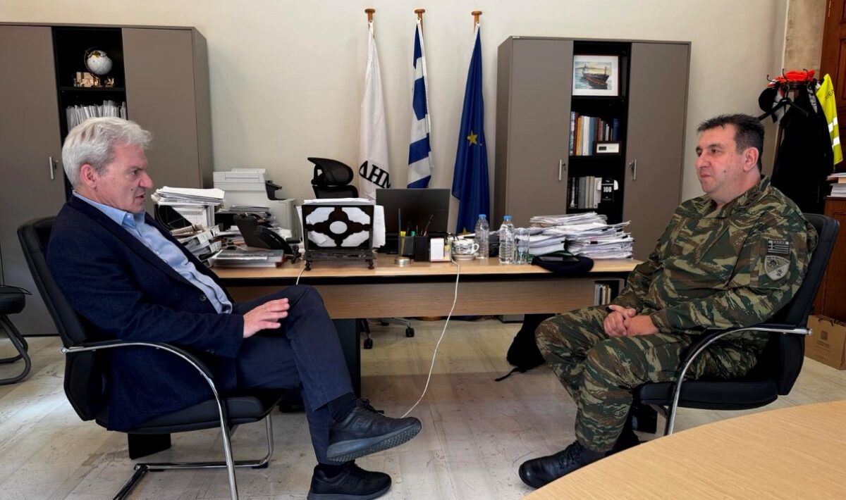 Το νέο Διοικητή της 44ης Στρατιωτικής Διοίκησης ΤΑΛΩΣ (πρώην ΣΕΑΠ) Ταξίαρχο Φώτιο Αρμπή συνάντησε ο Δήμαρχος Ηρακλείου Αλέξης Καλοκαιρινός το πρωί της Παρασκευής 6/2 στη Λότζια.