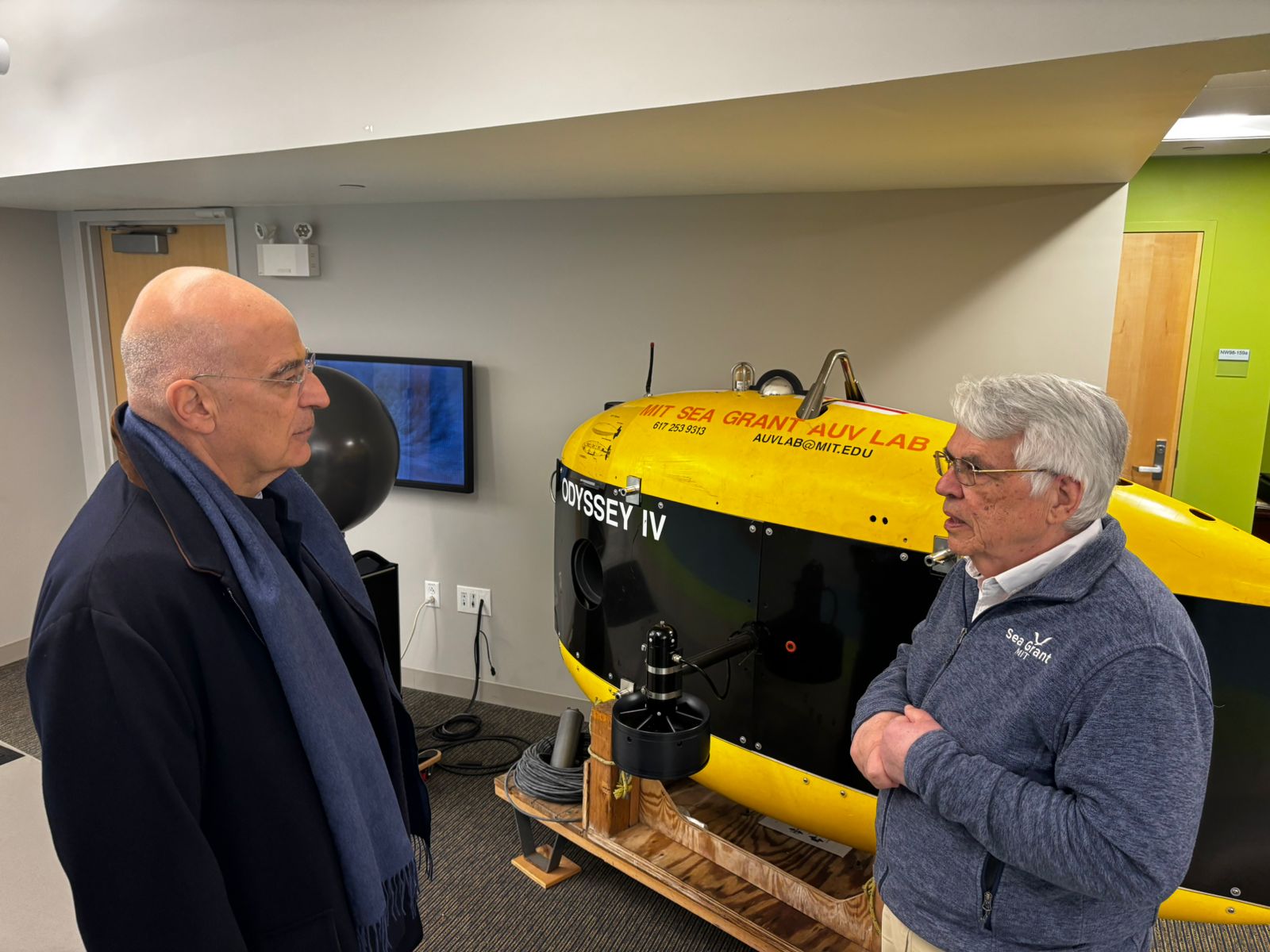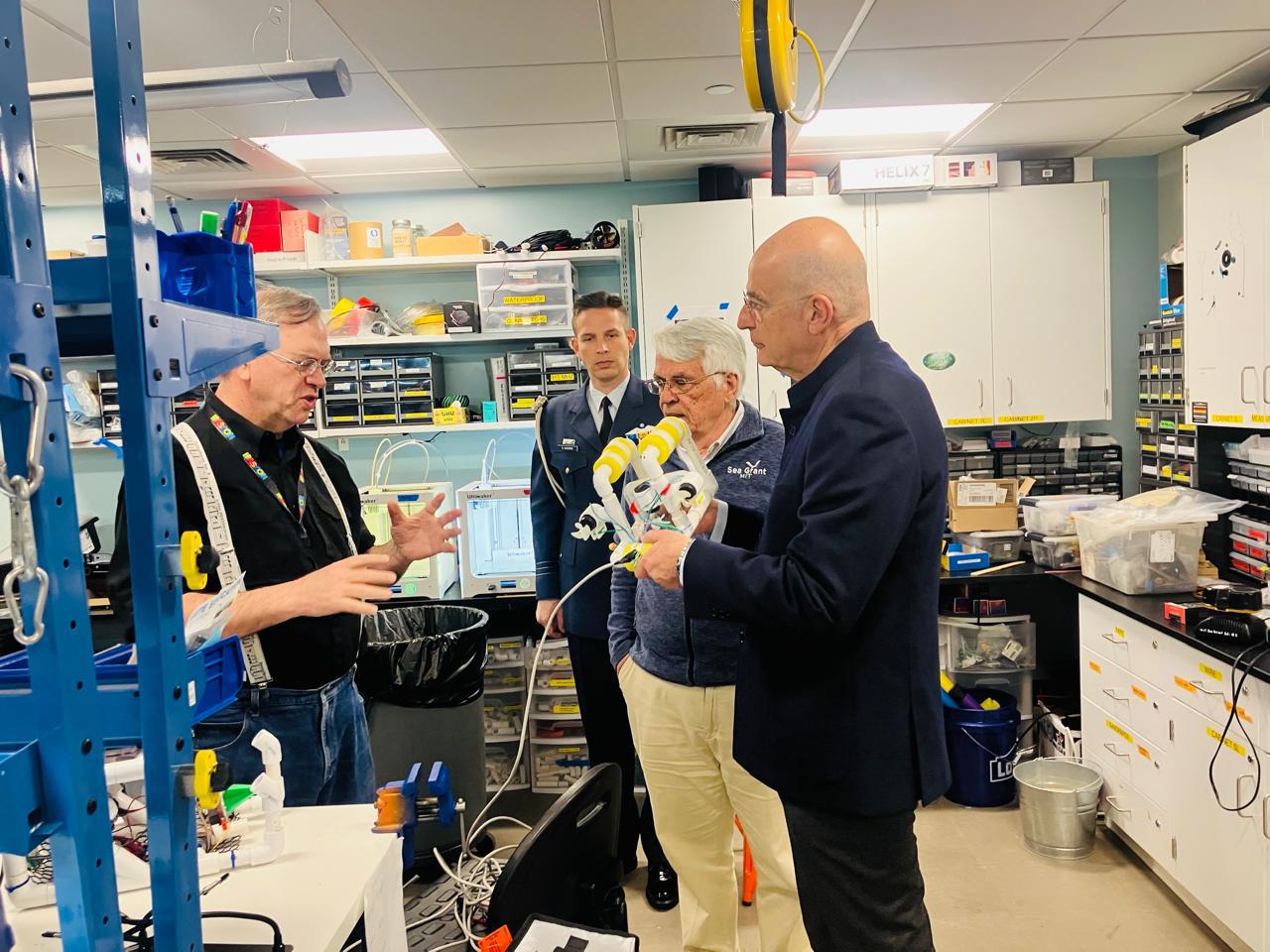 Ειδικότερα, ο Υπουργός Εθνικής Άμυνας επισκέφθηκε το Τεχνολογικό Ινστιτούτο Μασαχουσέτης (ΜΙΤ), ένα από τα κορυφαία πανεπιστήμια παγκοσμίως στους τομείς της Τεχνολογίας και της Καινοτομίας, όπου συναντήθηκε με τον Διευθυντή του Κέντρου Ωκεάνιας Μηχανικής στο Τμήμα Μηχανολόγων Μηχανικών, Καθηγητή Μιχαήλ Τριανταφύλλου (έδρα William I. Koch).
