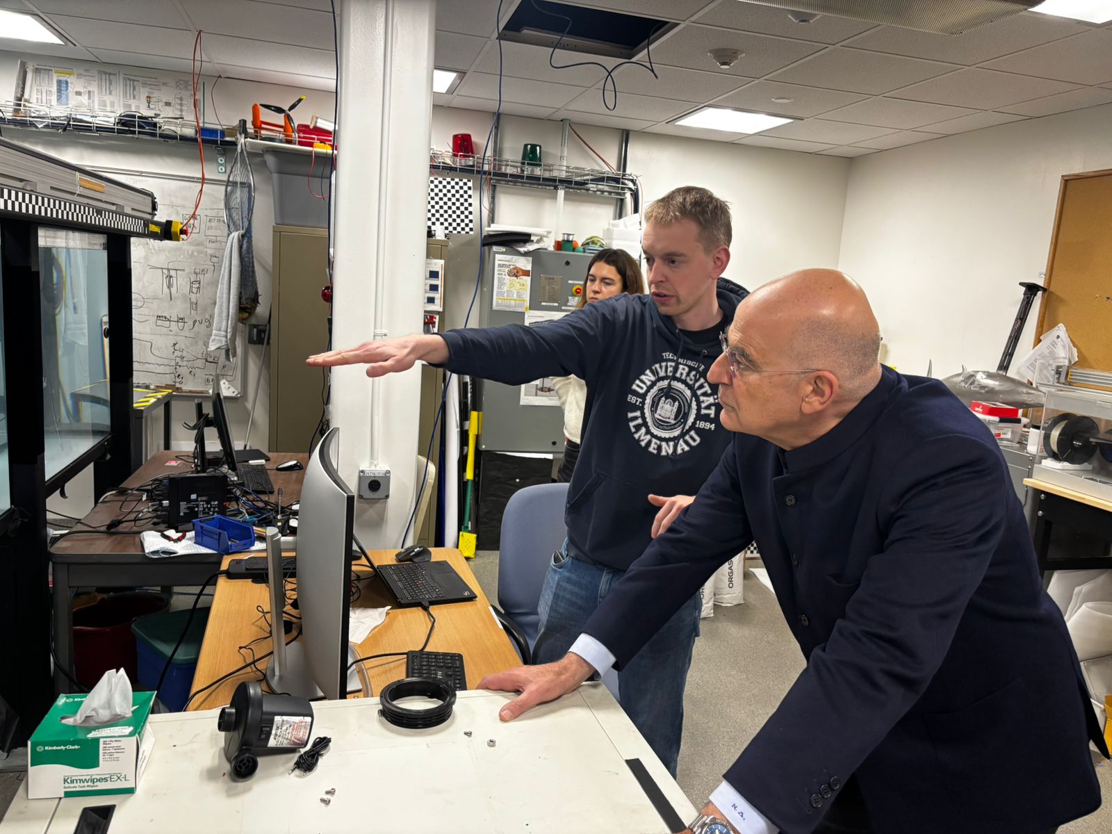 Επίσης, ο Υπουργός επισκέφτηκε στο MIT το Ινστιτούτο Αστροφυσικής και Έρευνας του Διαστήματος (KIAA), όπου συναντήθηκε με τον Δρα Ερωτόκριτο Κατσαβουνίδη, ο οποίος έχει μακρά ερευνητική παρουσία στους τομείς της φυσικής βαρυτικών κυμάτων, της αστροφυσικής συμπαγών αντικειμένων και της προηγμένης ανάλυσης δεδομένων.