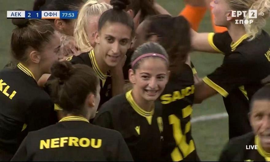 Ωστόσο, η ΑΕΚ αντέδρασε γρήγορα και ισοφάρισε στο 21’ με σουτ της Βιολάρη, η οποία αφιέρωσε το γκολ στην τραυματία συμπαίκτριά της Μπαρτζακλή.