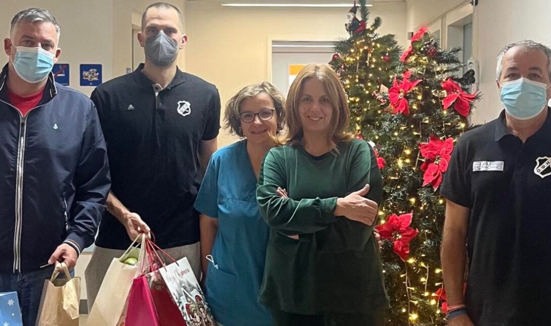 Εναρμονισμένη στο κλίμα των ημερών, αλλά και της γενικής φιλοσοφίας που την διέπει η ομάδα μπάσκετ του ΟΦΗ πραγματοποίησε για ακόμη μία χρονιά επίσκεψη αγάπης στην Παιδιατρική και Αιματολογική Κλινική Παίδων του ΠΑΓΝΗ, προσφέροντας δώρα, χαμόγελα και στιγμές χαράς στους μικρούς ήρωες και στις οικογένειες τους.