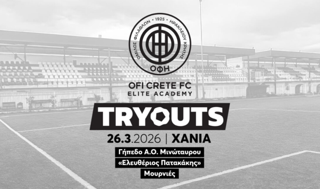 Στην ανακοίνωσή της με όλες τις λεπτομέρειες, η ΠΑΕ ΟΦΗ αναφέρει: «Η ΠΑΕ ΟΦΗ 1925 διοργανώνει δοκιμαστικές προπονήσεις (tryouts) την Πέμπτη 26/3 στα Χανιά, για την επιλογή νεαρών ποδοσφαιριστών που θα στελεχώσουν τις ομάδες της Elite Ακαδημίας στο μέλλον.