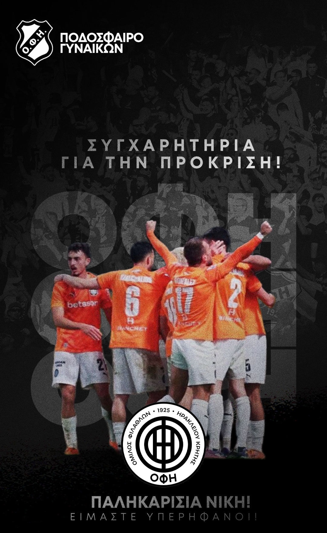 Στην ανακοίνωσή της η Γυναικεία ομάδα ποδοσφαίρου του ΟΦΗ τονίζει: «ΜΠΡΑΒΟ ΜΑΓΚΕΣ!