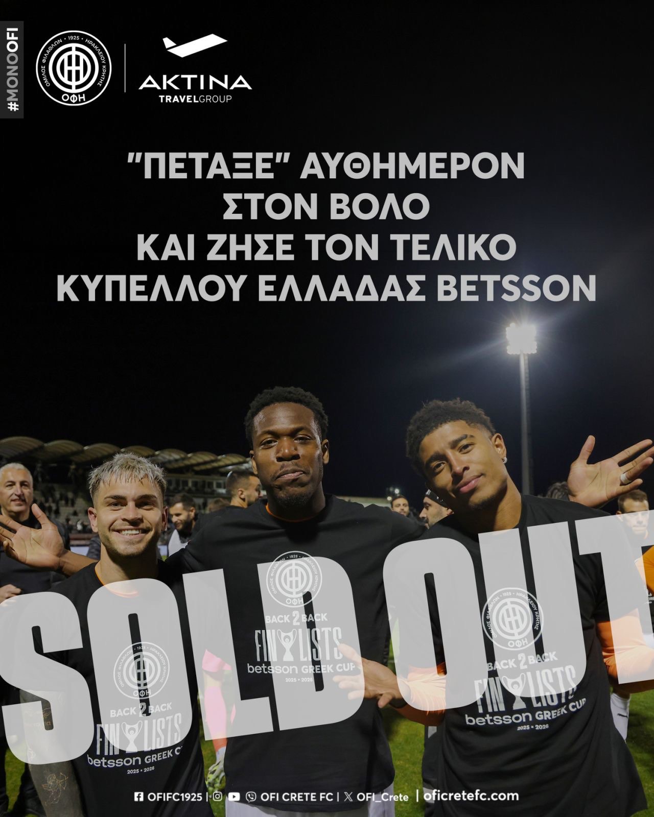 Όπως ήταν αναμενόμενο, εξαντλήθηκαν οι θέσεις και για το δεύτερο τσάρτερ που θα αναχωρήσει απευθείας από το Ηράκλειο για τον Βόλο ανήμερα του τελικού και θα επιστρέψει στο Ηράκλειο μετά τη λήξη του.