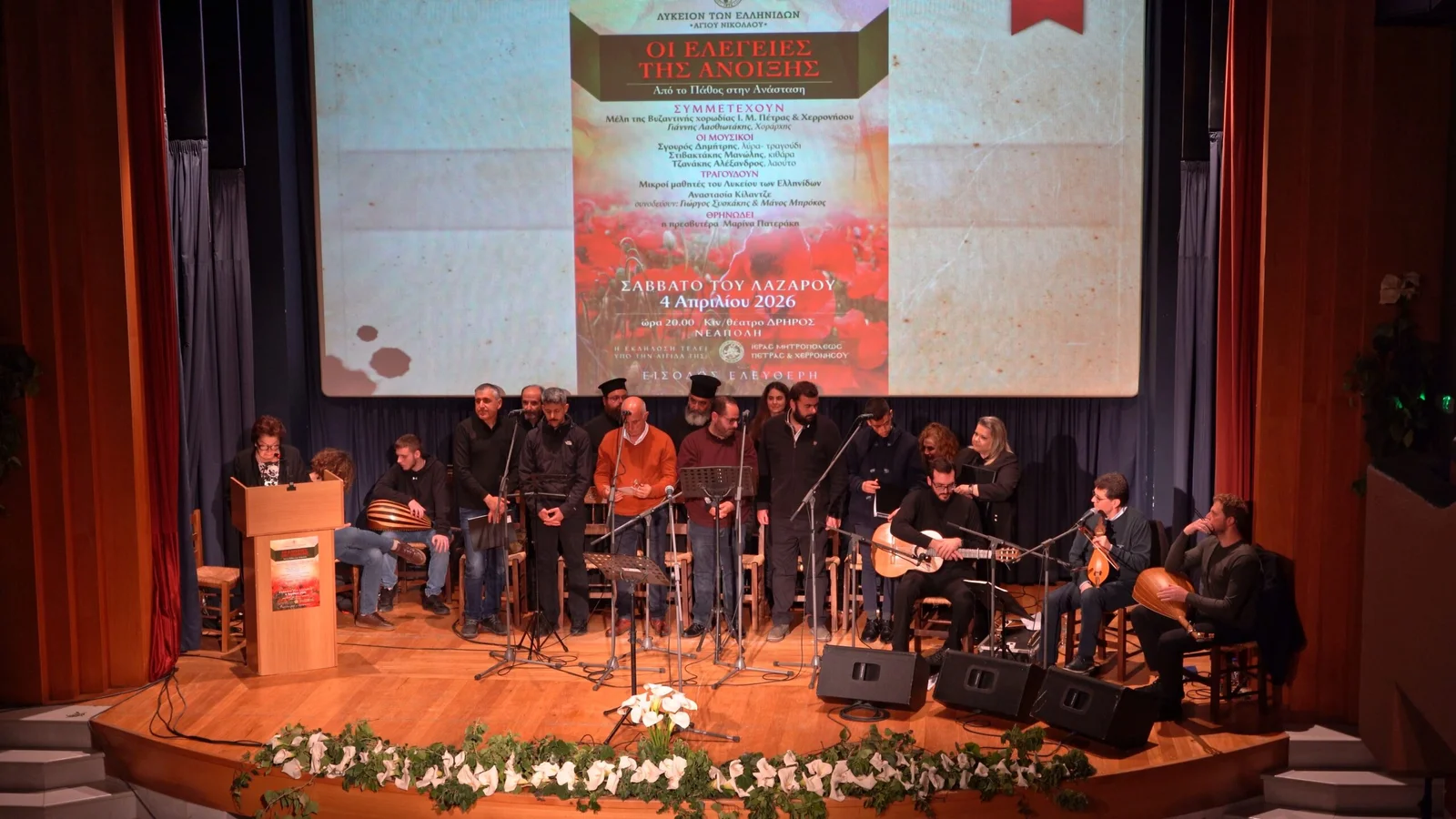 Μια ενδιαφέρουσα εκδήλωση λατρευτικής μουσικής διοργάνωσε το Λύκειο των Ελληνίδων Αγίου Νικολάου το Σάββατο του Λαζάρου, 4 Απριλίου, με τίτλο «Οι Ελεγείες της Άνοιξης», φέρνοντας το κοινό πιο κοντά στον πολιτισμό και την παράδοση με αφορμή το Ορθόδοξο Πάσχα.