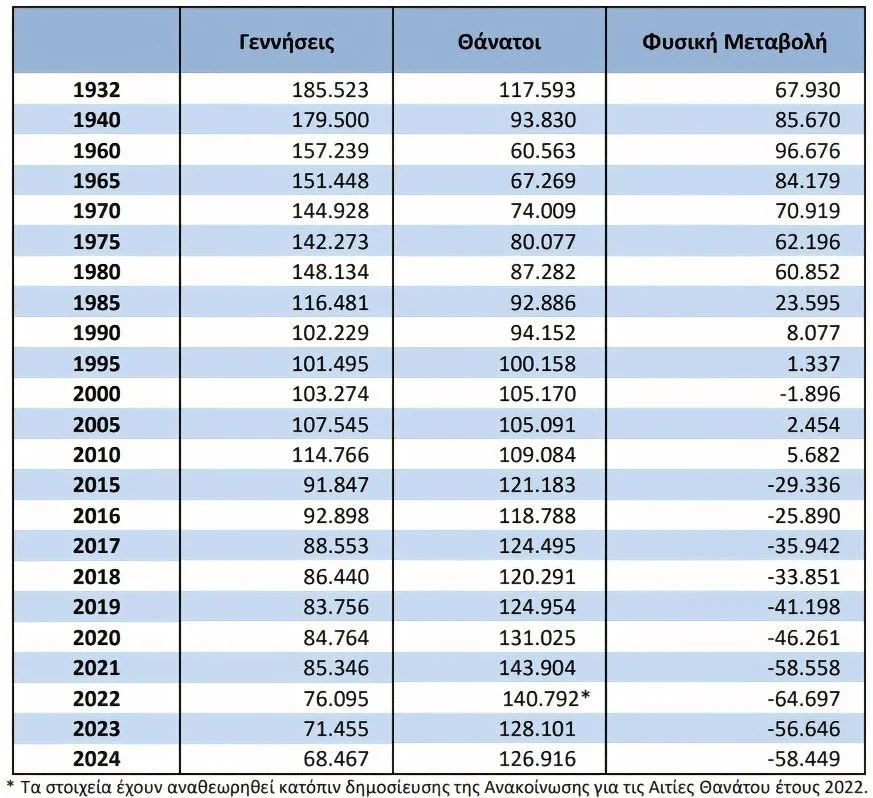 Ανησυχητικά τα στοιχεία της ΕΛΣΤΑΤ – Οι θάνατοι ξεπέρασαν κατά 58.449 τις γεννήσεις το 2024, ενώ οι ειδικοί προειδοποιούν για τις επιπτώσεις στις επόμενες δεκαετίες