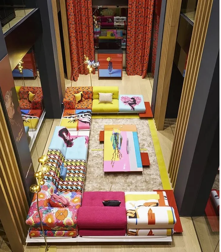 Η συνεργασία με τον εμβληματικό οίκο design Roche Bobois μοιάζει σχεδόν αναπόφευκτη, δύο δυνάμεις που μιλούν την ίδια γλώσσα: την γλώσσα της αισθητικής που δεν συμβιβάζεται. Στο σύμπαν αυτό, το χρώμα δεν είναι απλώς διακόσμηση – είναι αφήγηση, συναίσθημα, δήλωση ταυτότητας.