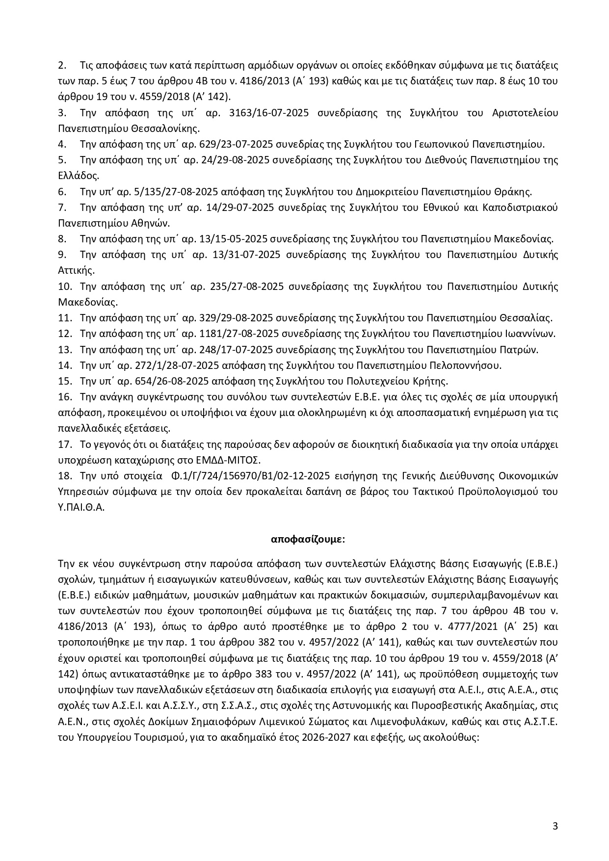 Μπορείτε να δείτε την απόφαση εδώ, ενώ, ακολουθούν οι αναλυτικοί πίνακες: