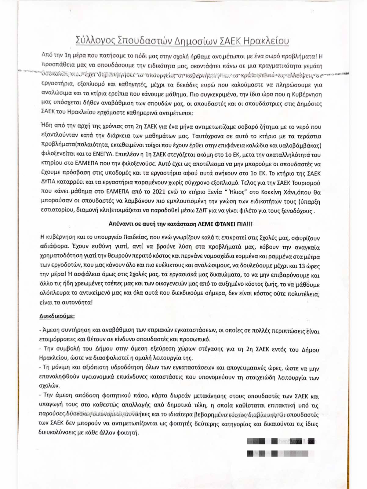 Στο Δημοτικό Συμβούλιο βρίσκεται και ο Σύλλογος Σπουδαστών ΣΑΕΚ