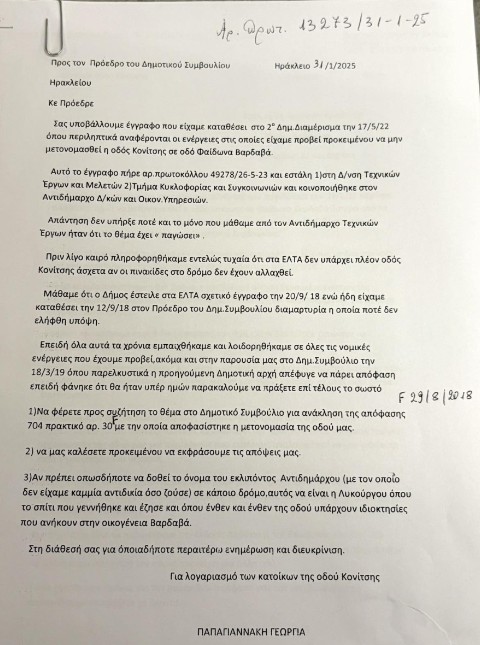 - Ο Δήμος Ηρακλείου απέρριψε τις αντιρρήσεις τους, υποστηρίζοντας λανθασμένα ότι οι κάτοικοι ήταν παρόντες και συμφώνησαν στη σχετική συνεδρίαση.