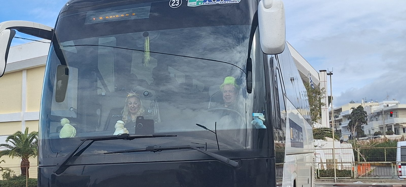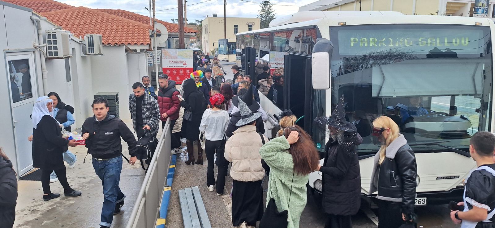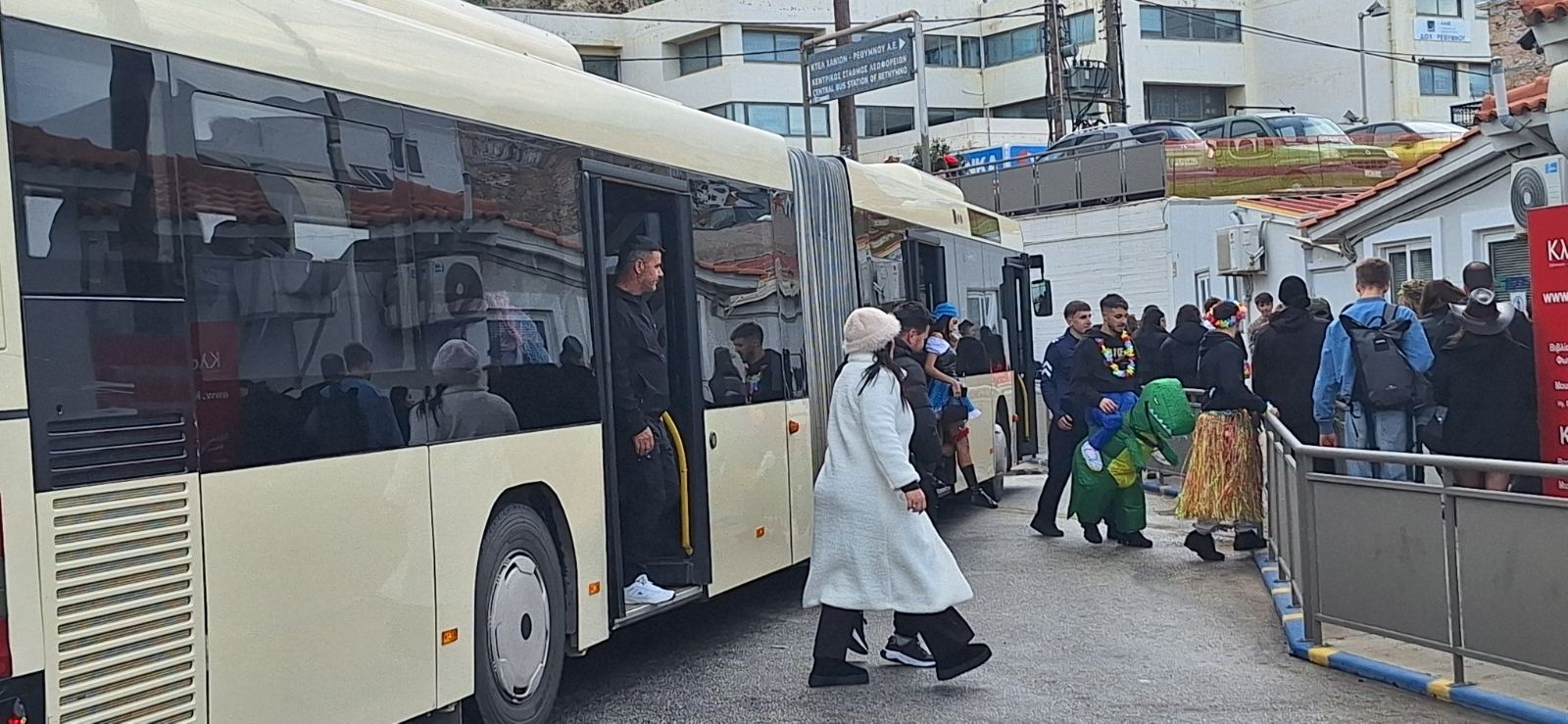 Εκατοντάδες επισκέπτες του Ρεθεμνιώτικου Καρναβαλιού, μεταφέρονται δωρεάν με μικρά και μεγάλα λεωφορεία του ΚΤΕΛ στο κέντρο της πόλης του Ρεθύμνου.