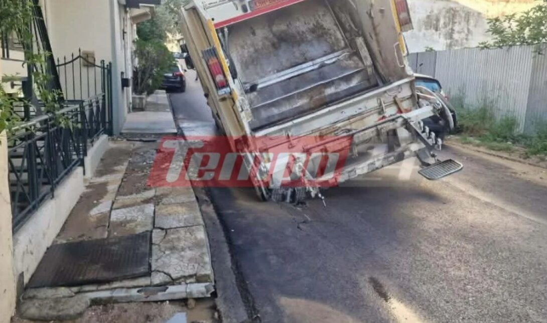 - Απορριμματοφόρο του Δήμου Πάτρας «βούλιαξε» λόγω καθίζησης του οδοστρώματος στη οδό Αλσυλλίου.