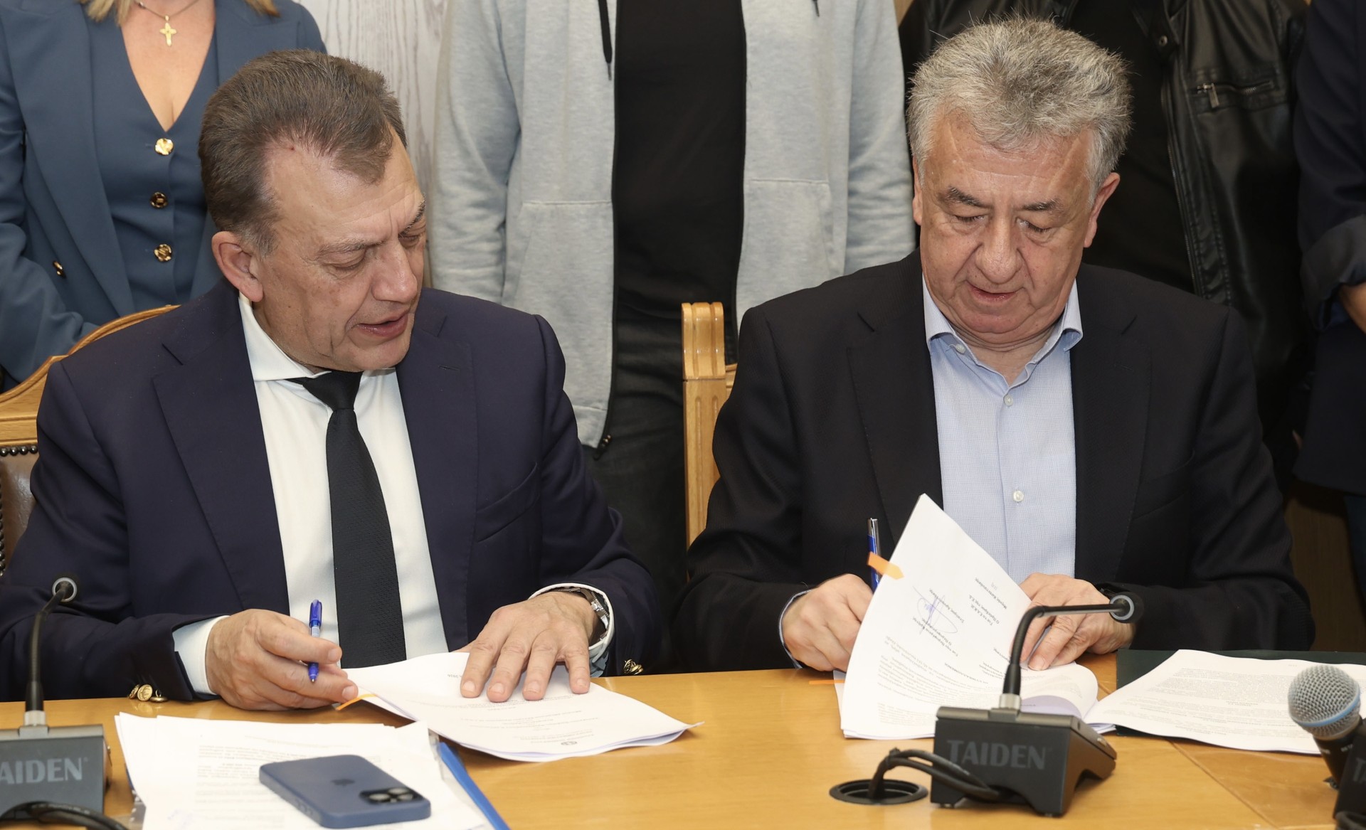 Την προγραμματική σύμβαση με την οποία το Υπουργείο Αθλητισμού χρηματοδοτεί την αναβάθμιση των αθλητικών υποδομών του Εθνικού Αθλητικού Κέντρου Ηρακλείου (ΕΑΚΗ), ύψους 1.200.000 ευρώ, συνυπέγραψαν σήμερα ο Υπουργός Αθλητισμού Γιάννης Βρούτσης, ο Περιφερειάρχης Κρήτης Σταύρος Αρναουτάκης και ο Πρόεδρος του ΕΑΚΗ Μηνάς Καπετανάκης.