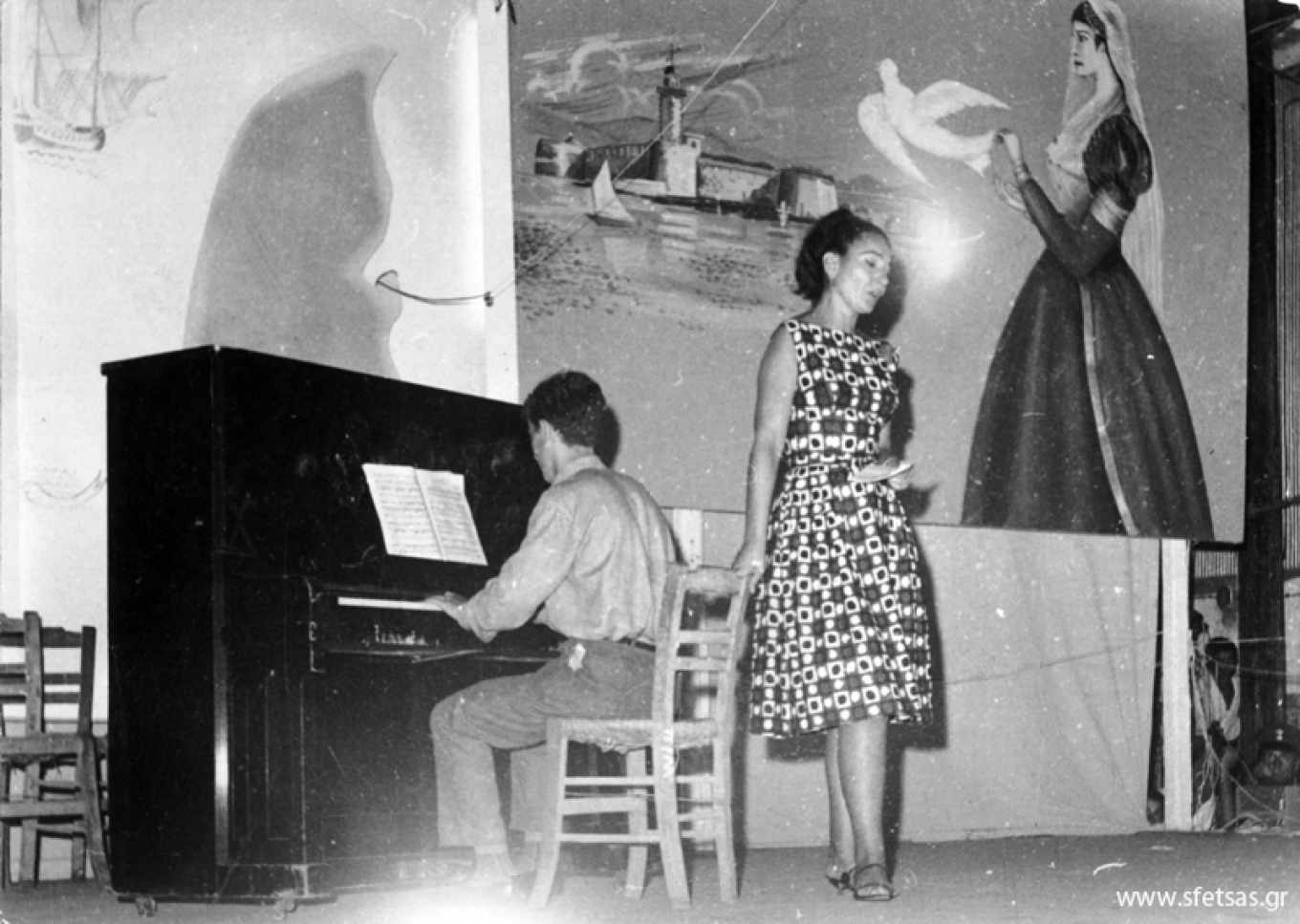 Λευκάδα, “Γιορτές Λόγου & Τέχνης”, Αύγουστος 1964. Ο Κυριάκος Σφέτσας, 18 ετών, συνοδεύει στο πιάνο την μεγάλη ντίβα Μαρία Κάλλας