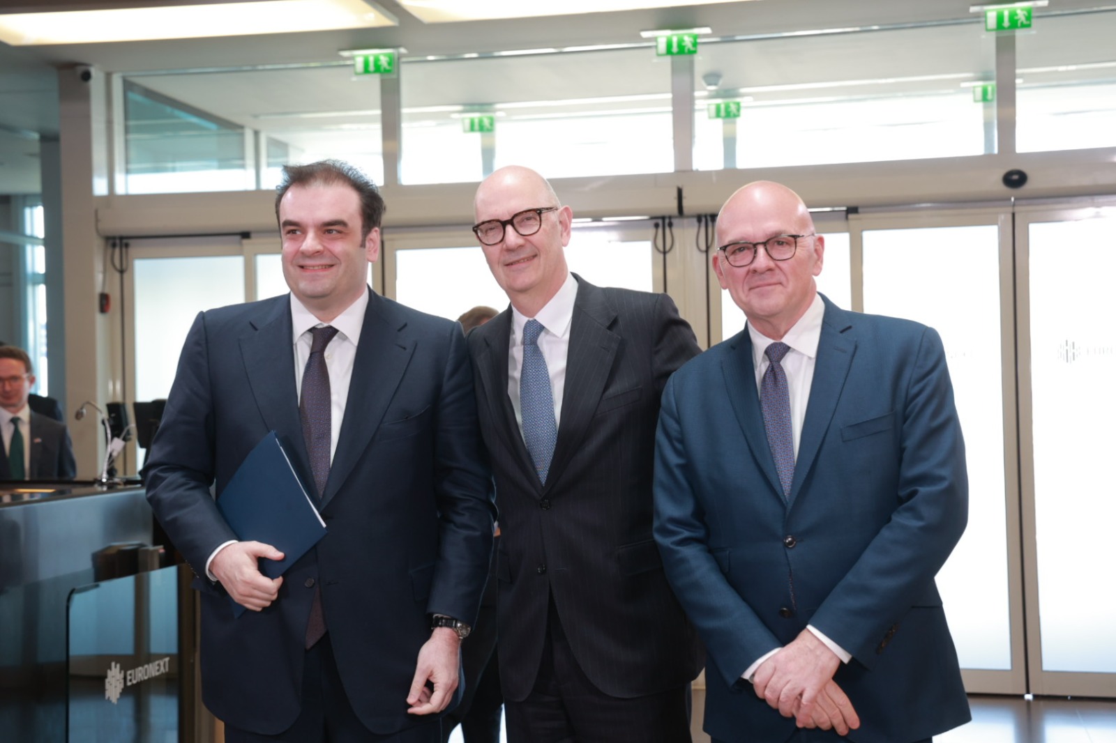 Το Euronext Technology and Support Centre στην Αθήνα εγκαινίασαν σήμερα το πρωί ο Υπουργός Εθνικής Οικονομίας και Οικονομικών και Πρόεδρος του Eurogroup Κυριάκος Πιερρακάκης με τον Γάλλο ομόλογό του Roland Lescure, παρουσία του Διευθύνοντος Συμβούλου της Euronext, Stéphane Boujnah.