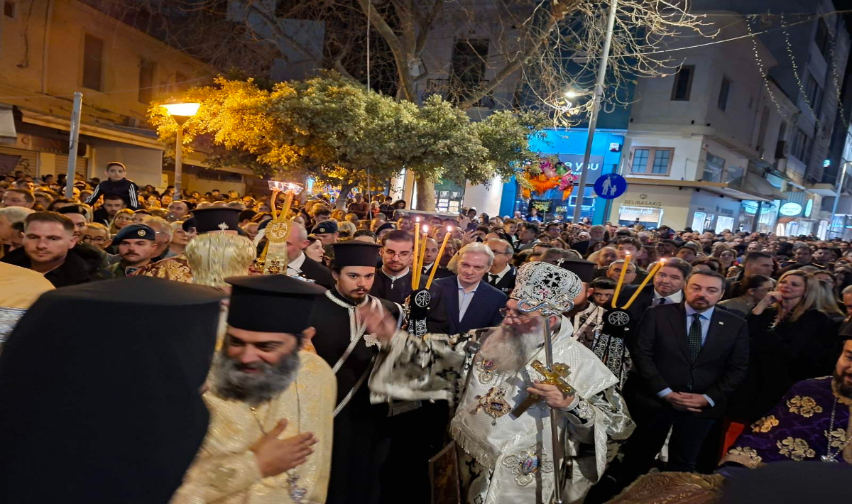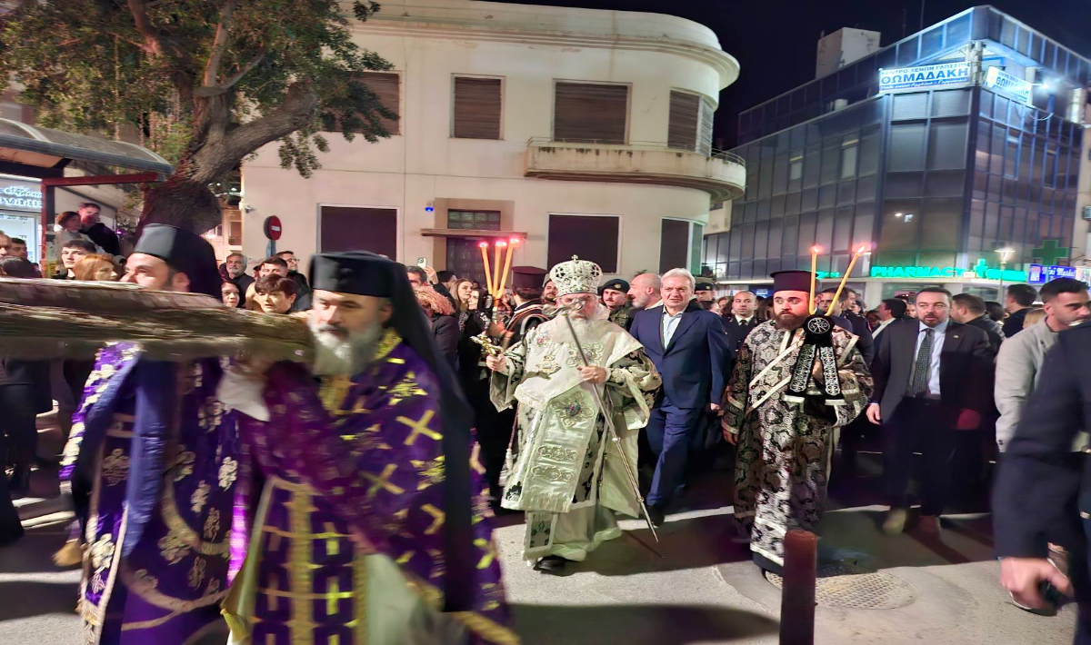 Μέσα σε κλίμα βαθιάς κατάνυξης και συγκίνησης, τελέστηκε το βράδυ της Μεγάλης Παρασκευής στον Ιερό ναό του Αγίου Μηνά η Ακολουθία του Επιταφίου Θρήνου, χοροστατούντος του Σεβασμιότατου Αρχιεπισκόπου Κρήτης Ευγένιου, παρουσία του Δημάρχου Ηρακλείου Αλέξη Καλοκαιρινού, μελών της Δημοτικής Αρχής, εκπροσώπων φορέων, αρχών και πλήθους πιστών.