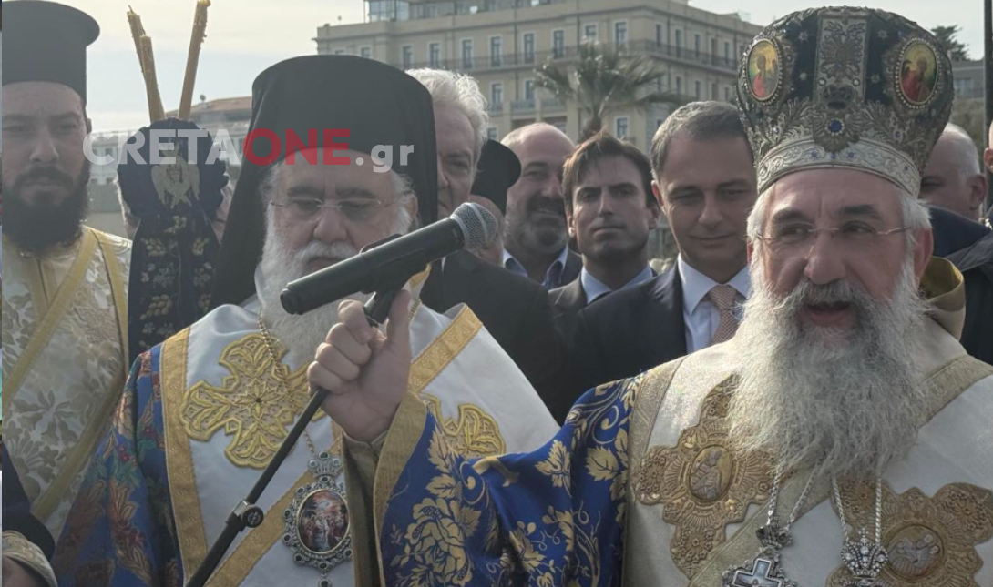 Ο Αρχιεπίσκοπος Κρήτης κ.κ. Ευγένιος μετά την τελετή πέταξε τον Τίμιο Σταυρό, με τους κολυμβητές να βουτούν στα νερά του λιμένα Ηρακλείου για να τον πιάσουν, να τον προσκυνήσουν και να λάβουν την ευλογία του.