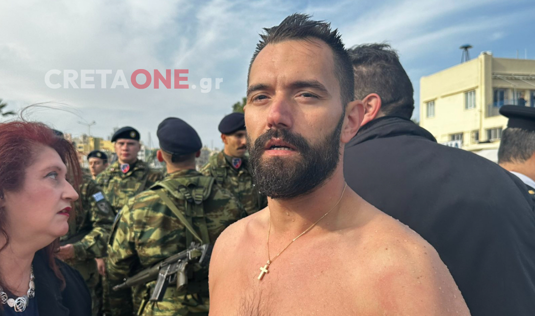 Μετά την έξοδό του από το νερό και το δώρο που πήρε από τον Αρχιεπίσκοπο, ο Δημήτρης Τόλιας ευχήθηκε υγεία και ευλογία σε όλο τον κόσμο.