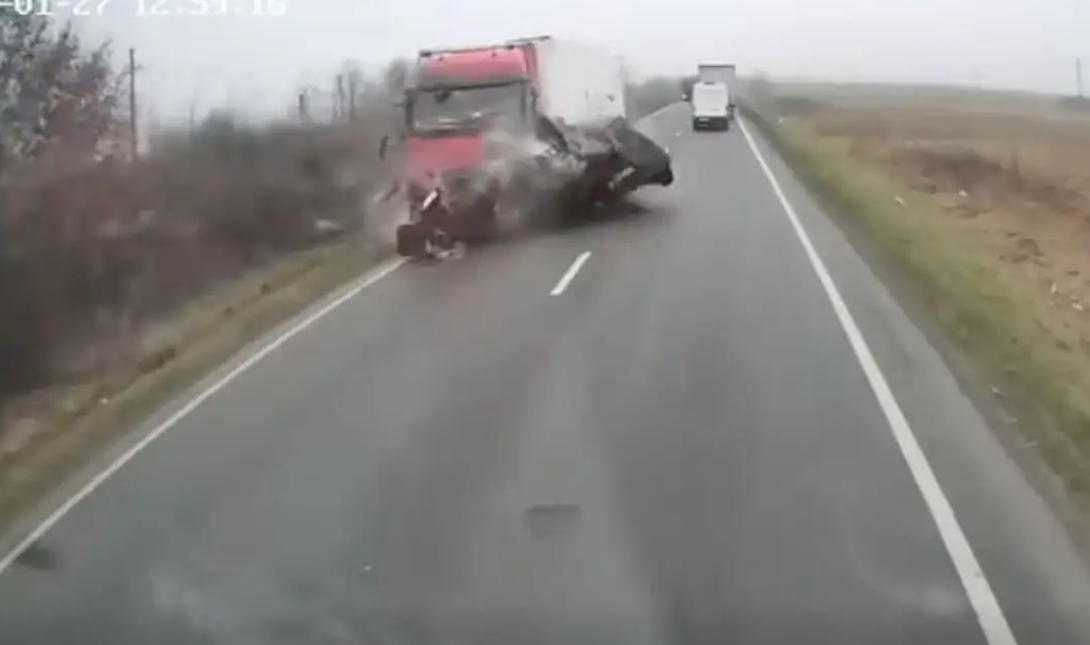 Στη προσπάθεια του να επιστρέψει στη λωρίδα του, συγκρούστηκε με μία βυτιοφόρο και εκφενδονίστηκε στην αντίθετη κατεύθυνση, όπου συγκρούστηκε με ένα φορτηγό.