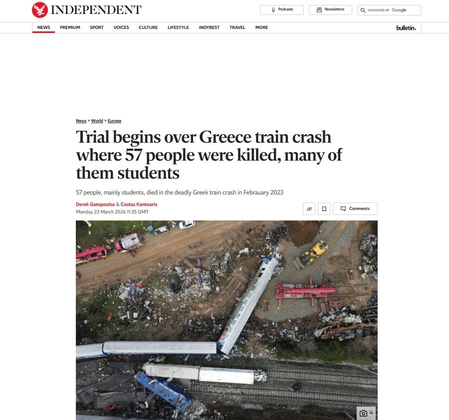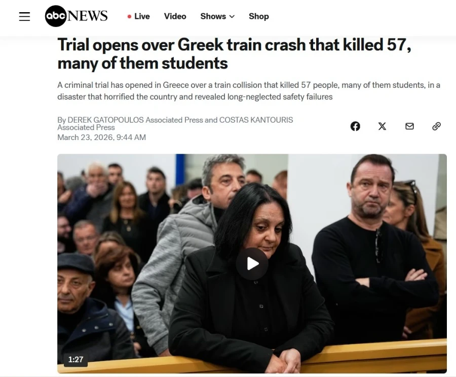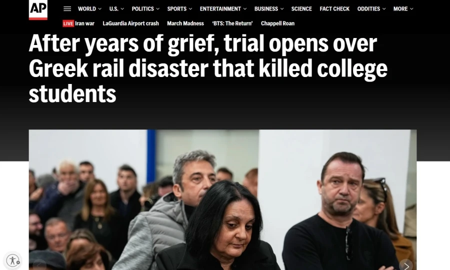 Μετά από χρόνια θλίψης, ξεκινάει στην Ελλάδα η δίκη για την σιδηροδρομική τραγωδία που σκότωσε φοιτητές, μεταδίδει μέσω του ανταποκριτή του το ειδησεογραφικό πρακτορείο Associated Press