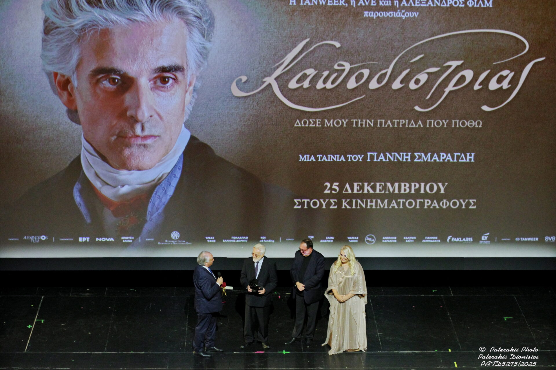 Σε κλίμα συγκίνησης πραγματοποιήθηκε την περασμένη Δευτέρα η επίσημη πρεμιέρα της πολυαναμενόμενης ιστορικής ταινίας «Καποδίστριας», σε σκηνοθεσία του Γιάννη Σμαραγδή.