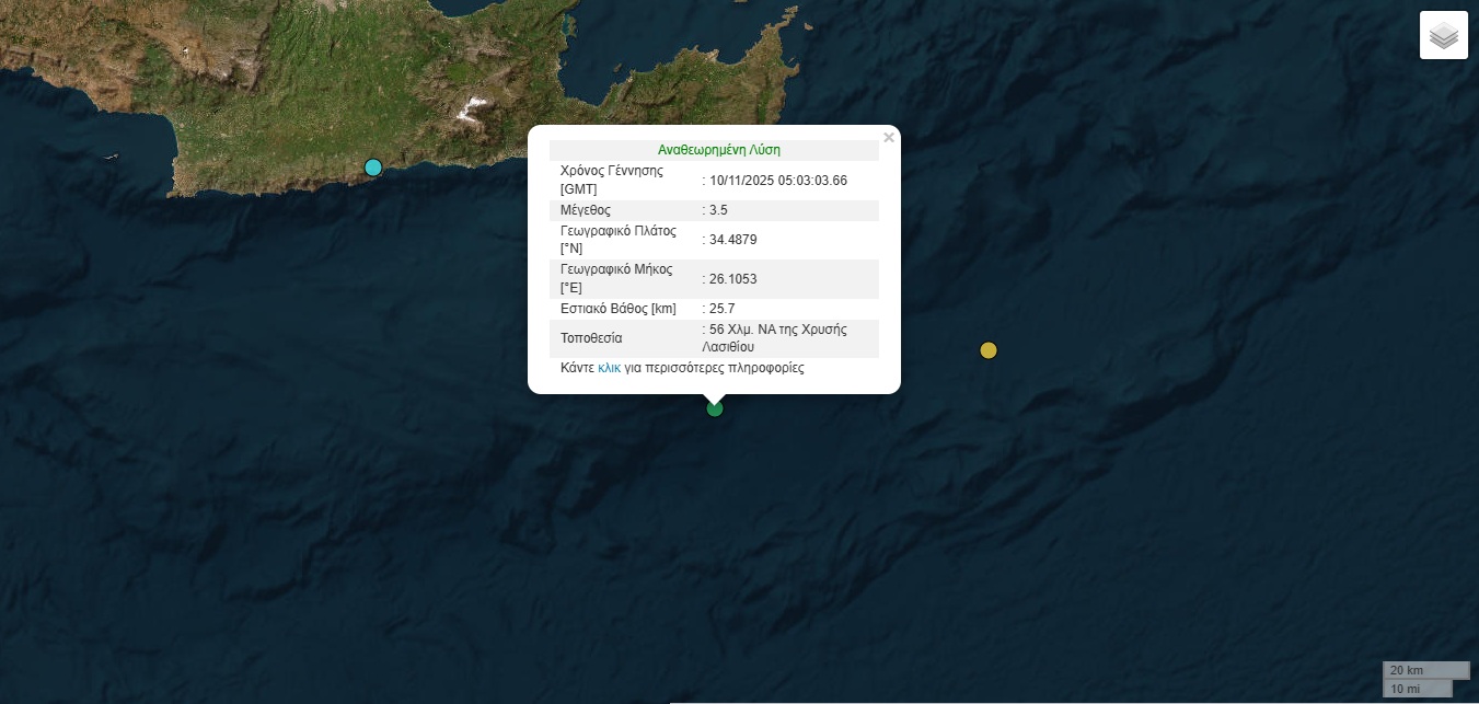 - Ο σεισμός καταγράφηκε στις 7:03, 56 χιλιόμετρα νοτιοανατολικά της Χρυσής.