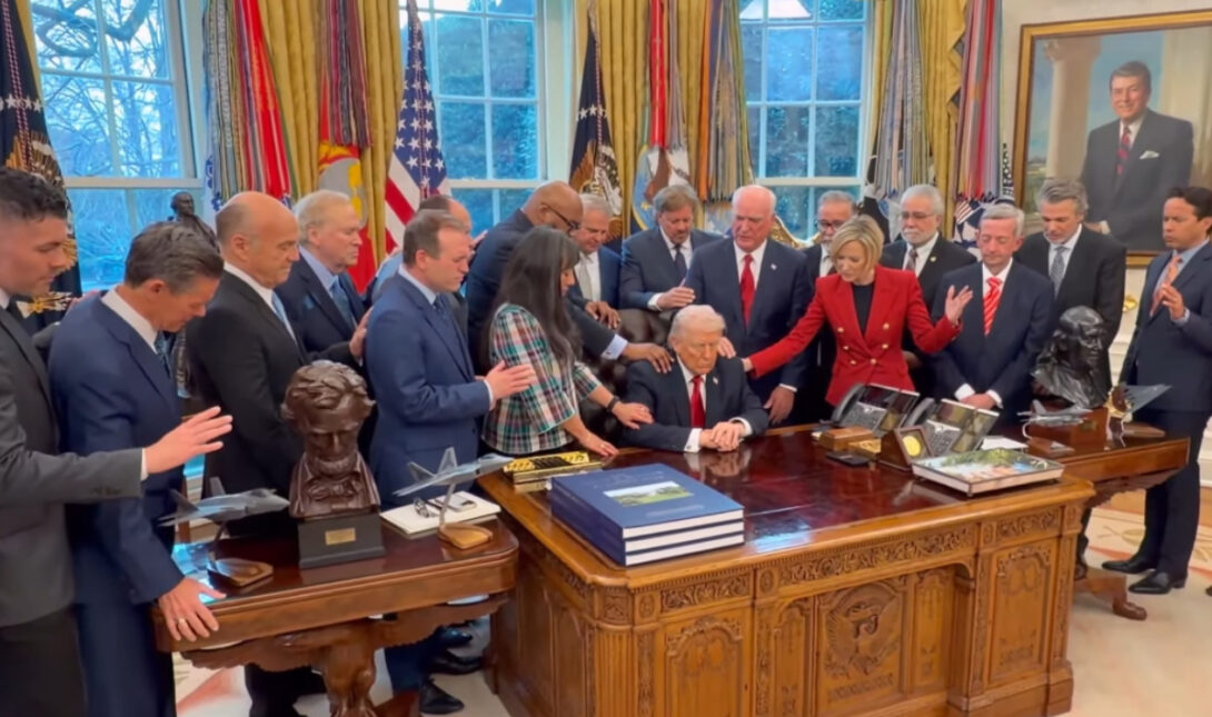 Οι θρησκευτικοί ηγέτες συγκεντρώθηκαν γύρω από τον Αμερικανό πρόεδρο και συμμετείχαν σε ομαδική προσευχή, ζητώντας θεία καθοδήγηση, σοφία και προστασία καθώς ηγείται της χώρας σε μια περίοδο αυξημένων γεωπολιτικών εντάσεων.