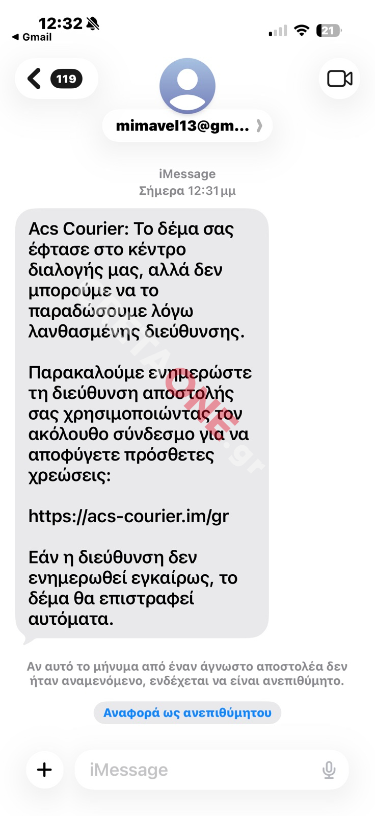 - Πρόσφατα sms από γνωστή εταιρεία ταχυμεταφορών περιέχουν επικίνδυνο σύνδεσμο.
