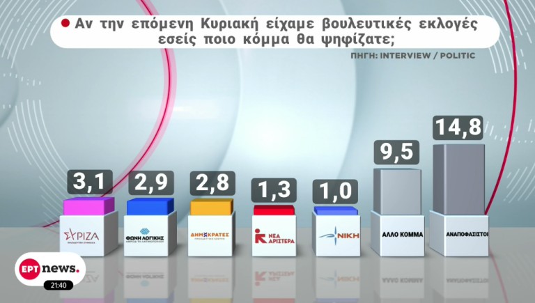 - Οι αναποφάσιστοι καταγράφονται στο 14,8%.
