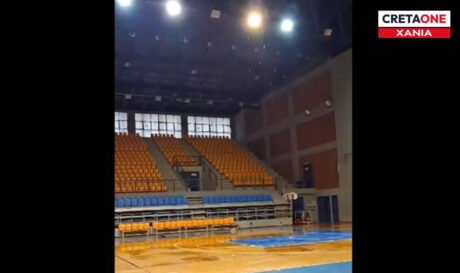 Εικόνες ντροπής στα Χανιά: «Πισίνα» το κλειστό γυμναστήριο του Κλαδισού από τη χθεσινή μπόρα