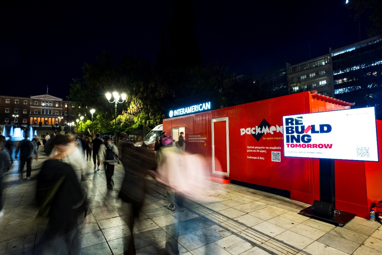 Πρόσφατα η Interamerican παρουσίασε το Packmen Project, μια βιωματική εμπειρία που πραγματοποιήθηκε στο πιο κεντρικό σημείο της Αθήνας, αξιοποιώντας τη δύναμη των Social Media για να μιλήσει στη νέα γενιά για τις μεγάλες προκλήσεις του σήμερα. Συγκεκριμένα, τον Οκτώβριο, δύο creators, έμειναν 24 ώρες μέσα σε ένα container ειδικά διαμορφωμένο για να μοιάζει με σπίτι στην πλατεία Συντάγματος, δοκιμάζοντας την ετοιμότητά τους σε υποθετικά σενάρια φυσικών καταστροφών. Μέσω live streaming από το TikTok της Interamerican το κοινό είχε την ευκαιρία να παρακολουθήσει τις εξελίξεις και τα challenges, αλλά και να αποφασίσει τι θα ακολουθούσε.