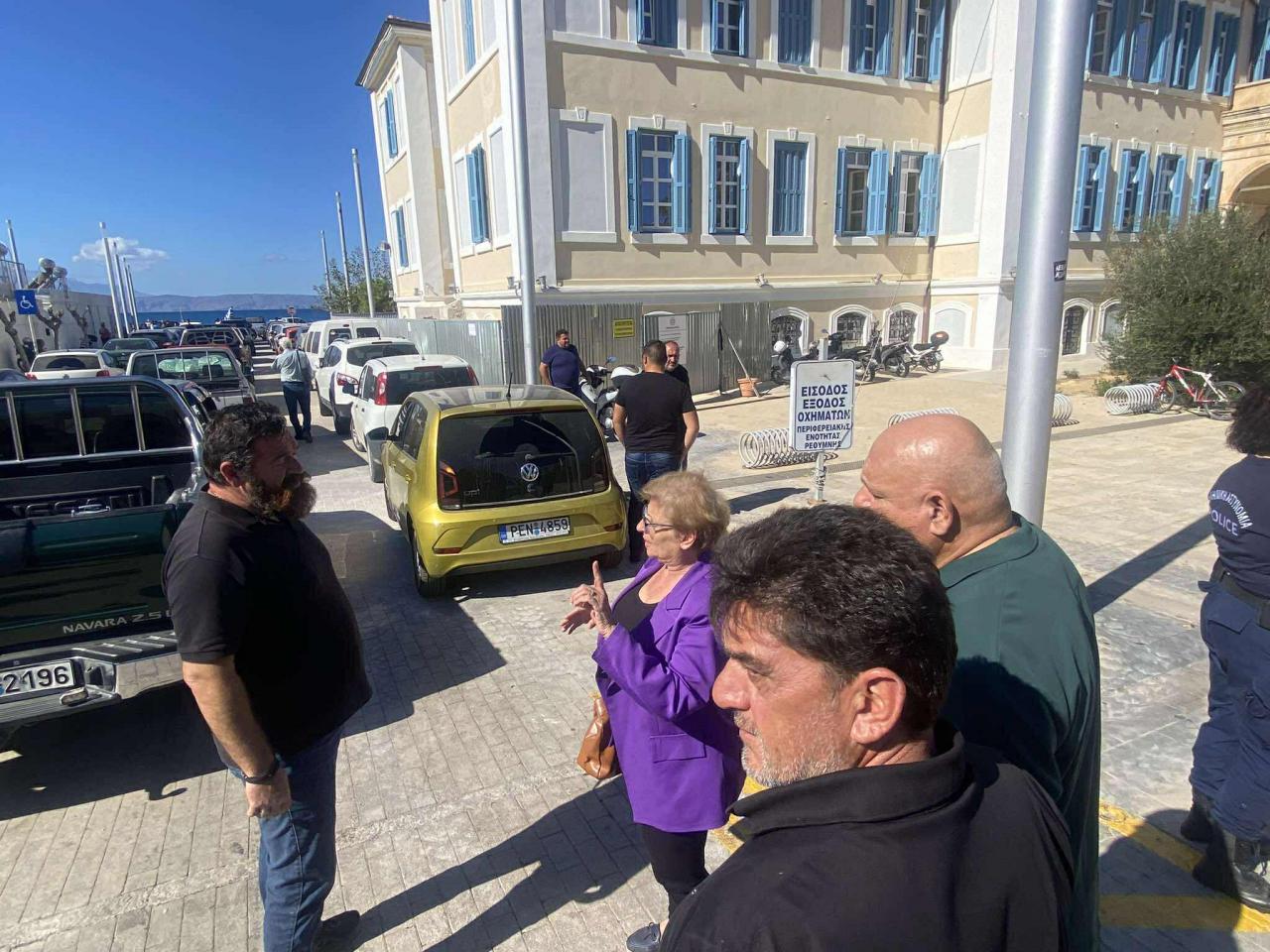 Στη συνέχεια, οι διαμαρτυρόμενοι αποχώρησαν από το σημείο και κινήθηκαν προς την Αντιπεριφέρεια Ρεθύμνου, την οποία και απέκλεισαν, ζητώντας άμεσες λύσεις στα προβλήματα του κλάδου. Εκεί, οι εκπρόσωποί τους είχαν συνάντηση με την αντιπεριφερειάρχη Μαίρη Λιονή, στην οποία εξέθεσαν τα αιτήματά τους.
