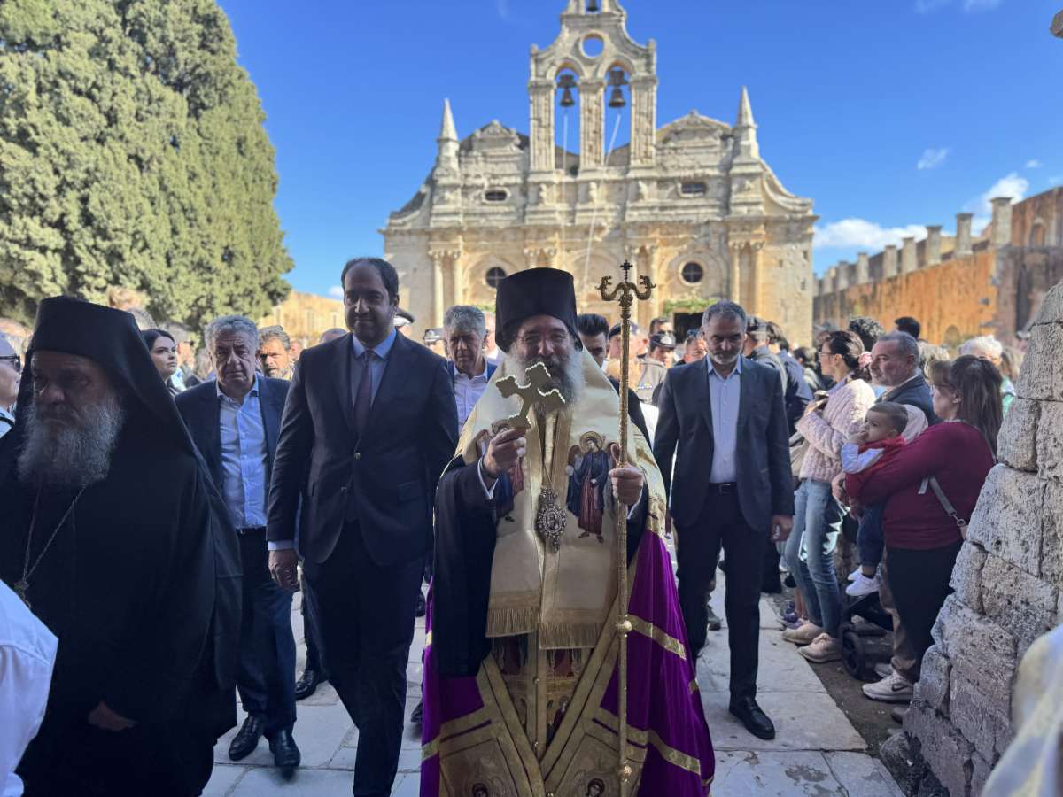 Ακολούθως, πραγματοποιήθηκε Επίσημη Δοξολογία, στο Καθολικό της Μονής, με την παρουσία πλήθους κόσμου και όλων των Τοπικών Πολιτικών, Στρατιωτικών και Αστυνομικών Αρχών, ενώ την Ελληνική Κυβέρνηση εκπροσώπησε ο Υπουργός Κλιματικής Κρίσης και Πολιτικής Προστασίας και Βουλευτής Ρεθύμνου κ. Ιωάννης Κεφαλογιάννης. Κατά την Δοξολογία, τον Πανηγυρικό της ημέρας εκφώνησε με γλαφυρό και συγκλονιστικό τρόπο ο Ελλογιμώτατος κ. Νεκτάριος Παπαδογιάννης, Καθηγητής Πανεπιστημίου και Αντιδήμαρχος Παιδείας, Νέας Γενιάς και Δια Βίου Μάθησης του Δήμου Ρεθύμνης.