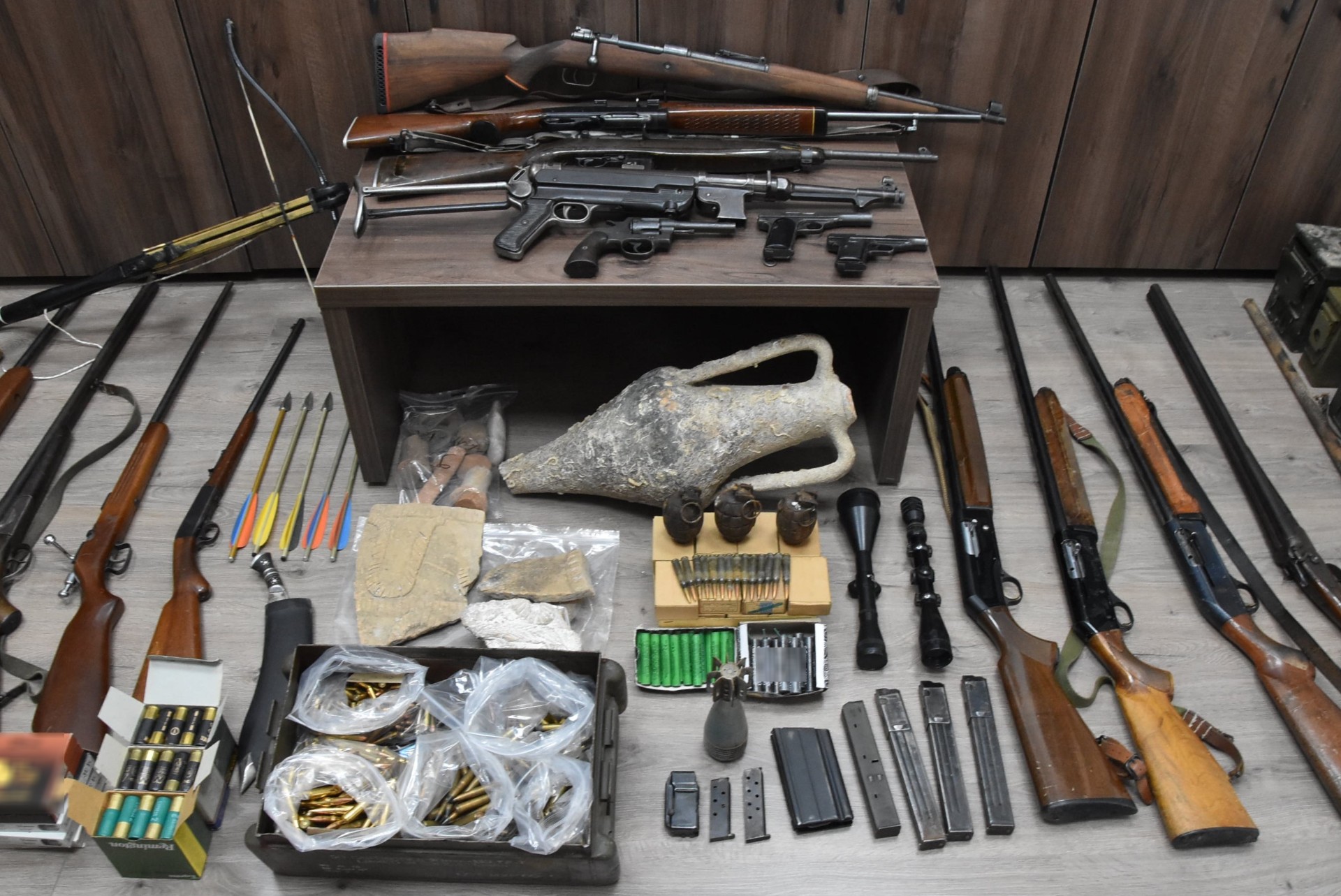 - Εντοπίστηκαν 16 όπλα, 12 γεμιστήρες, 2.000 φυσίγγια, 3 χειροβομβίδες, και άλλος εξοπλισμός.