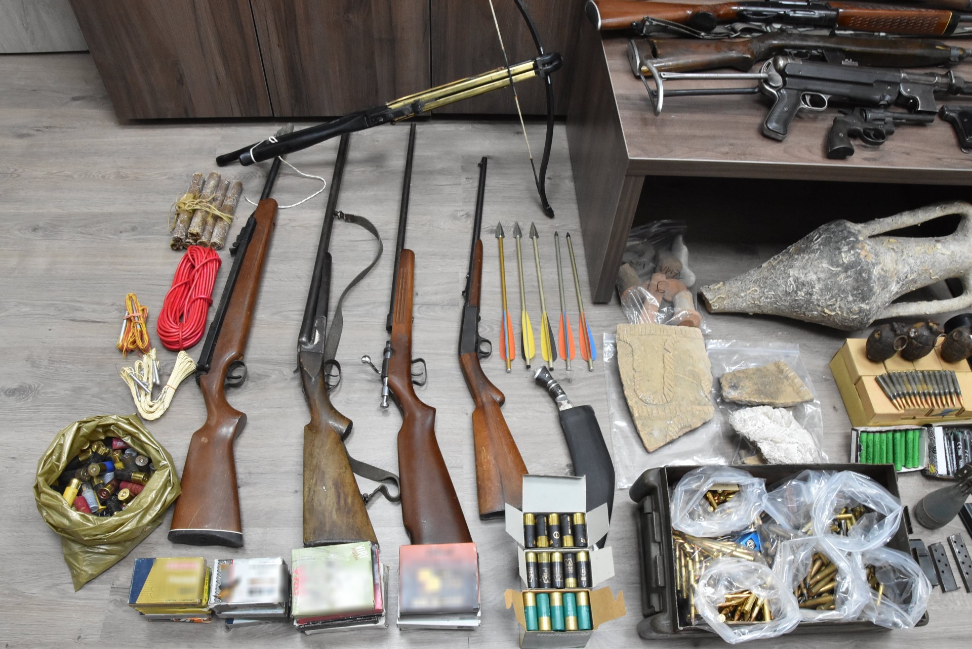 - Βρέθηκαν επίσης αρχαιολογικά αντικείμενα, η κατοχή των οποίων εξετάζεται για πιθανή παραβίαση νόμων προστασίας αρχαιοτήτων.