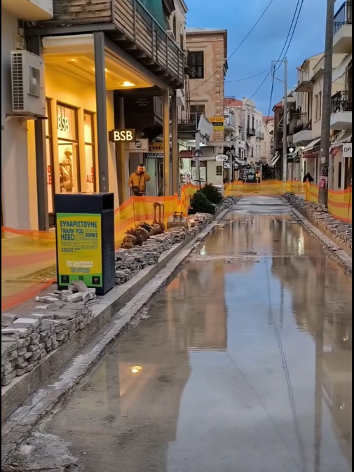 - Η οδός Αρκαδίου στο Ρέθυμνο πλημμύρισε λόγω έργων αλλαγής πλακόστρωτου.